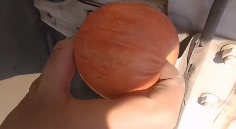 三十多万的新能源防撞梁没想到这么薄,网友拿来削苹果,真的是太讽刺了~