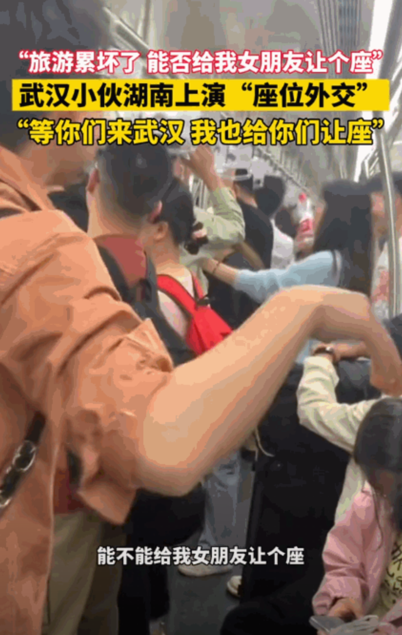当时车上挤得转身都难,女孩累得直揉小腿,男孩突然拍拍手:“各位叔叔阿姨,我是武汉来的小张,这是我女朋友。要是谁愿意给她让个座,等您来武汉玩,我包接包送还管热干面!”