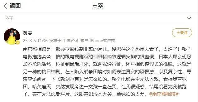 知名女作家黄雯吐槽《南京照相馆》是一部割韭菜烂片!IP变台湾后,还拒不承认! 消