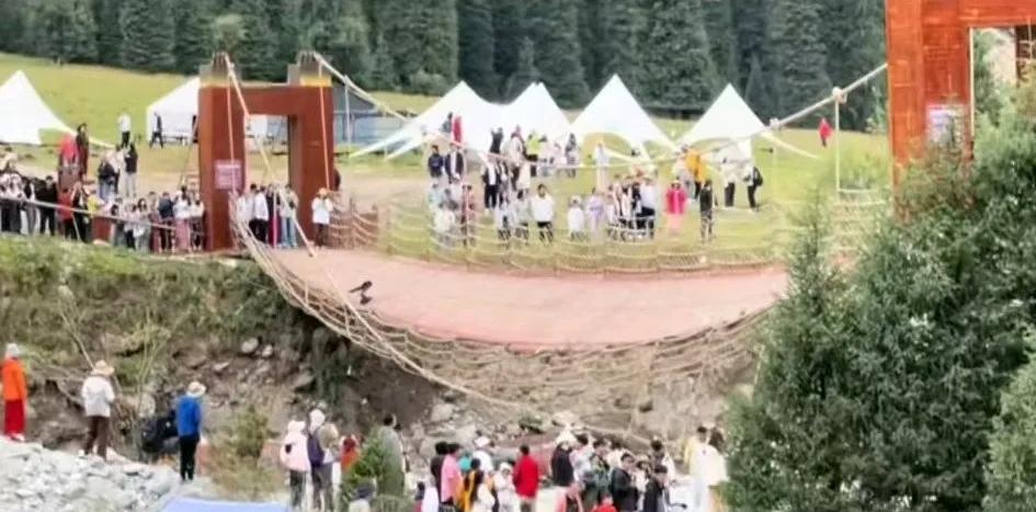 新疆夏塔的将军桥断了,有游客说总有人在上面晃来晃去,当时就觉得很危险。 桥到不是很高,离水面也就三、四米,但下面是湍急的夏特苏河,河水冰凉刺骨,希望掉下去的人都已经安然无恙。 这个桥据说去年就断过一次 ,今年又断了。 这个桥走不了,还可以去转运桥,从桥上看风景很美,秀色可餐,如果大家都规规矩矩地过桥就好了。 景区也得把好质量关,只有美好的旅游体验,才能招引更多的游客来玩儿啊!