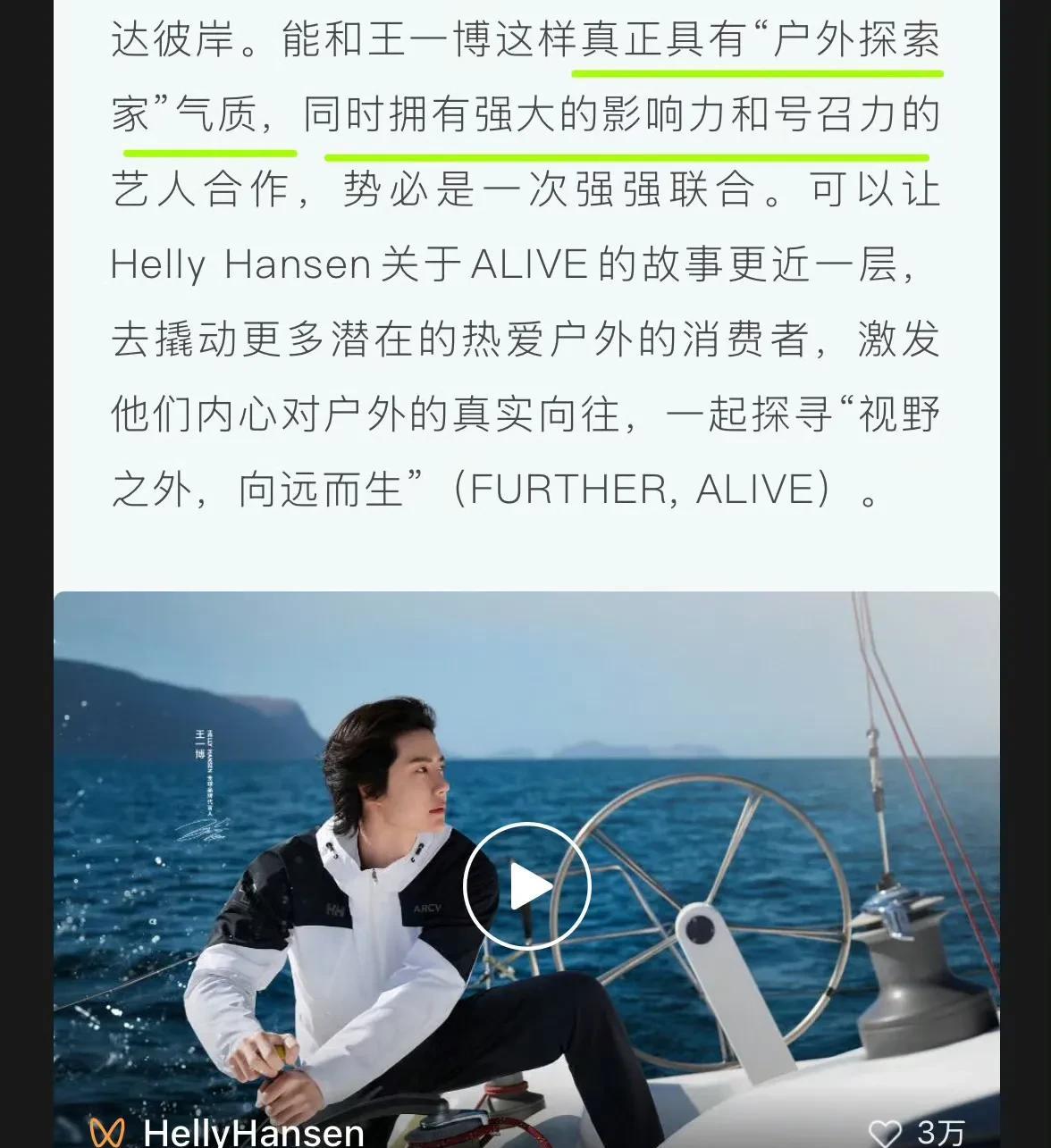 王一博,这只是拍广告,你怎么那么认真,竟然要主动加难度?!! 看了海丽汉森的采访,才知道王一博拍秋冬大片时背后的故事。图一二三。 在拍雪攀的时候,一博自己主动提出,去更陡更难的雪坡拍摄。为了呈现出更真实更有力量感的画面。 首先什么是雪攀?和攀冰一样吗? 雪攀是雪山攀登,是在以积雪覆盖的山体上攀登,积雪下有可能是雪,有可能是坚硬的冰壳,也有可能是冰雪混合坡面。 如果王一博去更陡的坡面雪攀,难度必须是加倍的,也充满了未知的危险。 可以夸一博勇敢,认真,爱挑战,即使他真的热爱攀冰、攀岩这样的户外运动, 但是,雪攀他没接触过,没练过。 所以真的要夸一夸王一博,他太敬业了。 无论是拍电影还是广告,他都认真对待,追求更好的拍摄效果[赞][赞][赞]。 #记录从今天开始# #王一博#