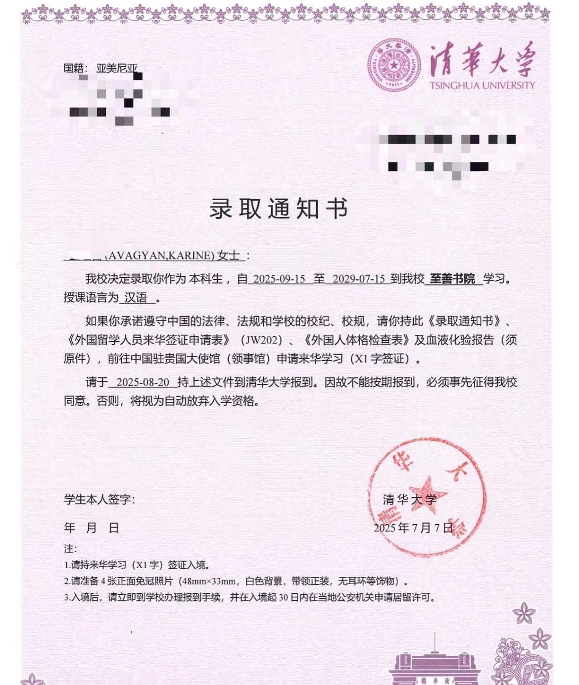 北京大学与清华大学的录取通知书