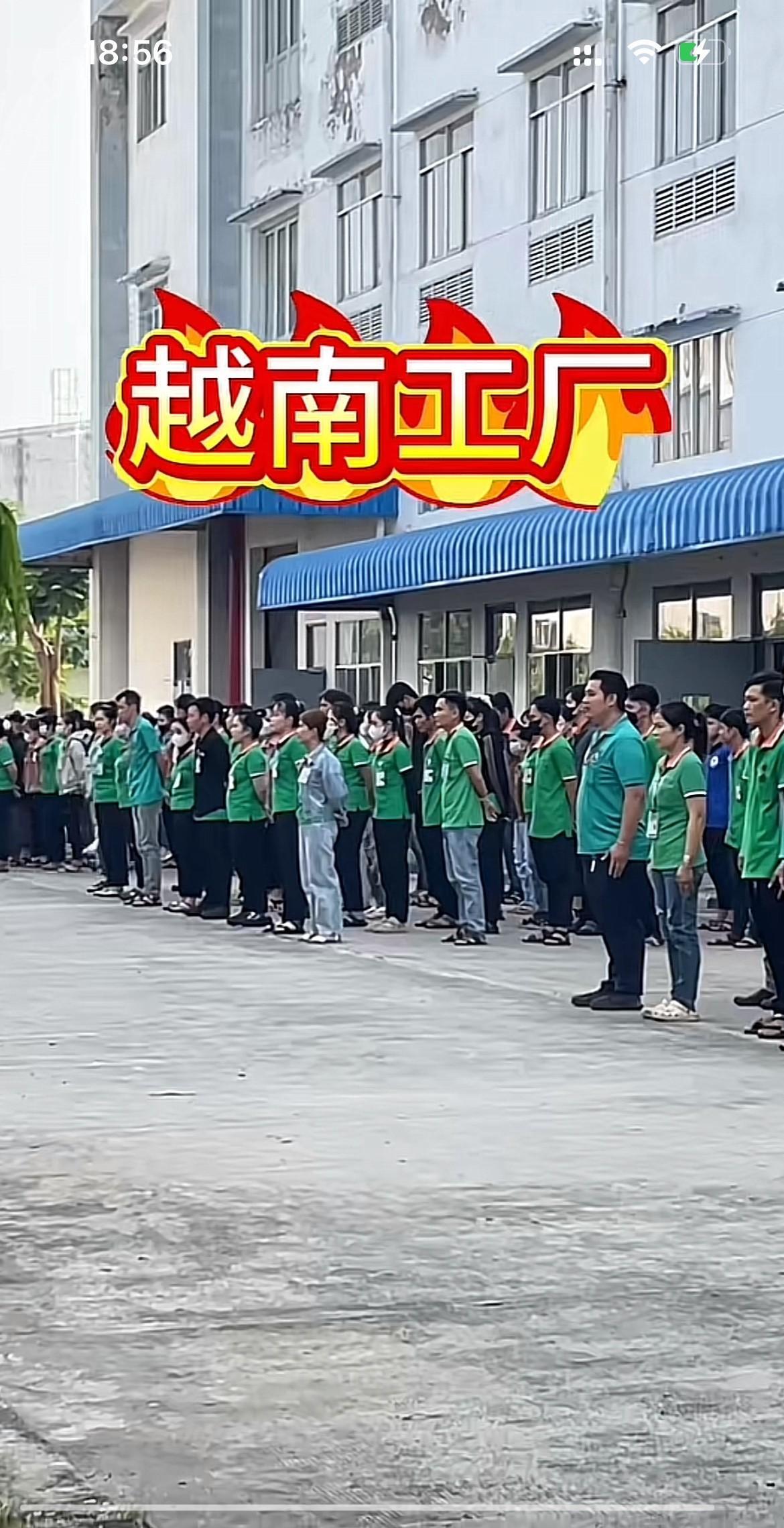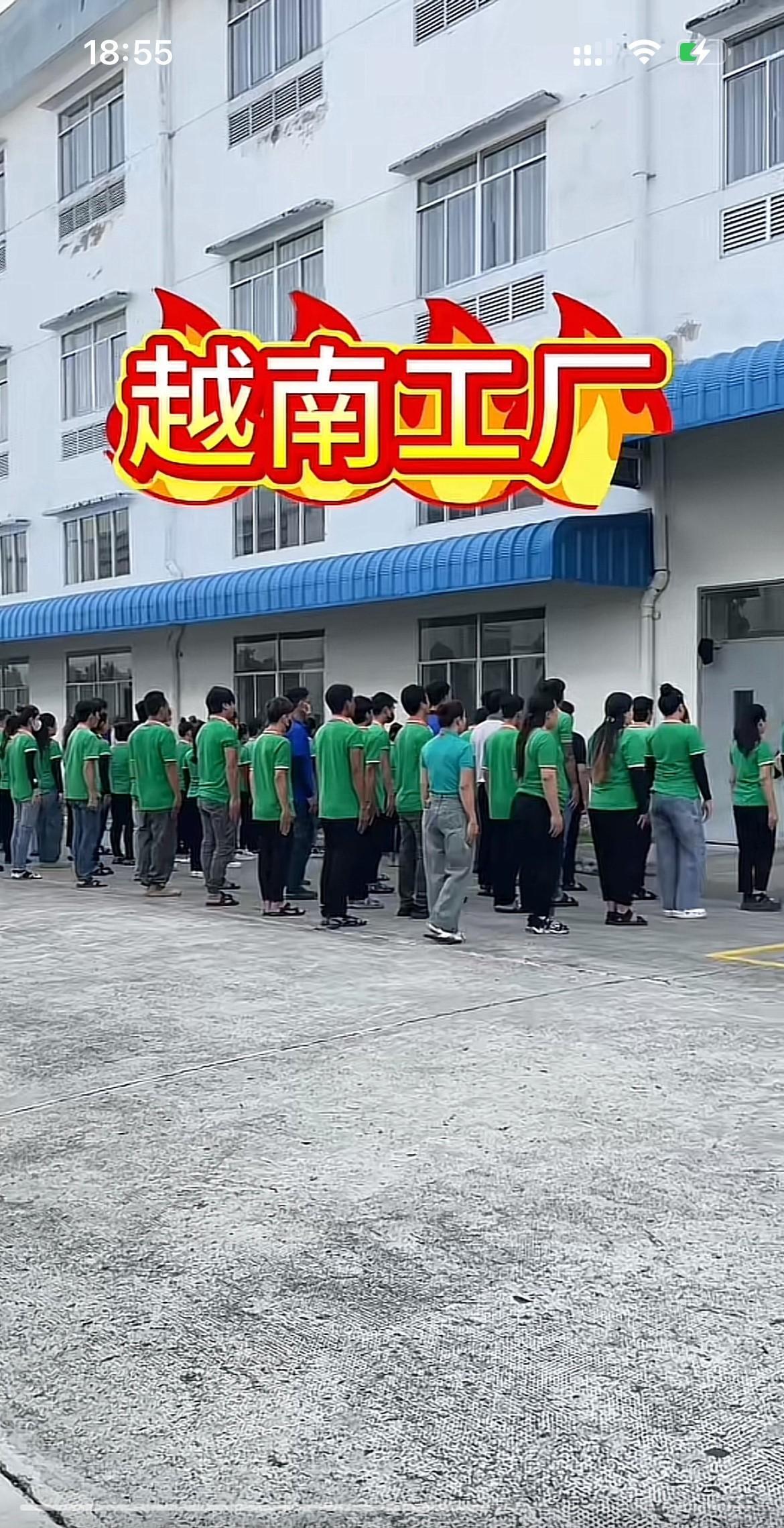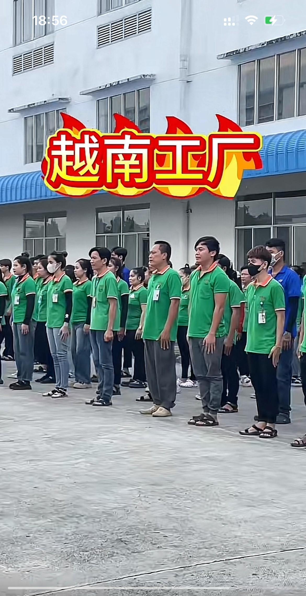 越南工厂实行军事化管理,每天上班前都要排队喊口号,还要向前转向后转,再到领导发表讲话,这种管理模式也传到越南来了。