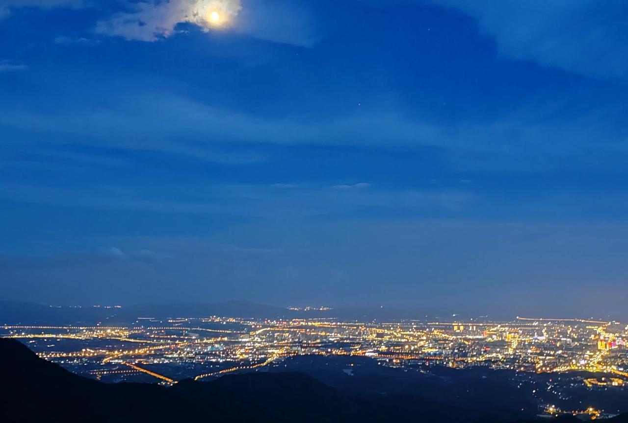 驱车20几公里山路看来还是值得的,山下38℃,山顶20℃!夜景很美,日落没赶上[