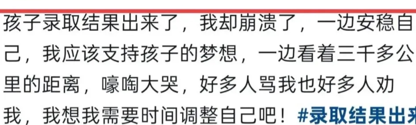 孩子的录取结果出来了,成功被西藏大学录取,可孩子妈妈却崩溃了,她一边安慰自己要支持儿子的梦想,一边看着3000多公里的距离嚎啕法大哭。
