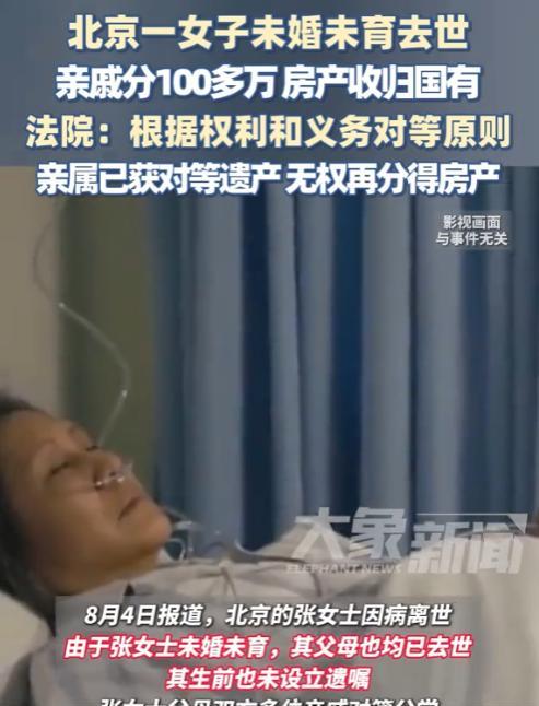 “白嫖成功了?”北京,一女子因病去世,留下一套价值400万的房子和100多万现金,由于她没有结婚,也没有孩子,更没有立遗嘱,亲戚们认为自己都有继承权,于是就起诉至法院瓜分遗产!法院这样判了! 就在8月4日,媒体曝光了一则法院的判决结果,让人倍感意外。 在北京的一家法院里,上演了一场格外“热闹”的争执,一大群人围在一起,吵吵嚷嚷,那架势不知道的还以为是结了多大仇的冤家。 可实际上,他们互相之间都是亲戚,而让这些亲戚不顾情面闹到法院的,竟是一份和他们没多少直接关系的财产。 事情还要从一位女子的去世说起,也是因为她,这些亲戚才能串到一块儿的。 女子的经历也可以称得上是悲惨的,她生前工作能力还行,所以不仅在北京有一套房产,还自己存下了一百多万的存款。 虽然经济方面女子还过得去,但是亲情和感情方面实在是不如意,女子不光失去了父母,她自己还没有成家,所以连孩子也没有。 更倒霉的是,女子身体不好,得了很严重的病,最后没能救过来去世了,这还真应了那句话,“人走了,钱没花了”。 关键是她走得突然,连份遗嘱都没来得及立,所以这么多遗产一时间都不知道该怎么继承。 就在这时,那些平日里来往不算特别密切的亲戚们,一个个都站了出来,这个说自己以前帮过女子不少忙,那个称自己曾经照顾过她,都觉得自己有资格分一份遗产,谁也不让谁。 最后只能闹到法院,等着法官来判定遗产该怎么分。 其实在这之前,估计谁也没料到会有这么一出,女子在世时,这些亲戚和她的往来程度各不相同,可在遗产面前,大家都卯足了劲想证明自己和女子的关系更亲近,自己更有理由继承。 法院在审理这起案子时,也是费了不少功夫,得一一核实这些亲戚所说的帮扶情况,看看谁是真的对女子多有关照,谁只是想趁机分一杯羹。 毕竟遗产继承总得有个章法,不能谁吵得凶就给谁多一分。 最后法院给出了这样的判决,遗产由这些亲戚共同拥有,但其中那位确实对女子帮扶较多的亲戚,分得的份额稍微多一些,其他亲戚则平分剩下的部分。 倒也在情理之中,毕竟付出过实际的关怀和帮助,在遗产分配上得到一点倾斜,也算是对她过往付出的一种认可。 而那套价值 400 万的房子,最终被充公了,这样的判决结果,让不少人觉得挺意外。 那些亲戚,为了这份本不属于自己的遗产,在法院里争得面红耳赤,甚至不惜撕破脸皮,想想也挺唏嘘的。 事情曝光后,有网友说,平日里或许还能维持着亲戚间的和气,可在金钱和利益面前,这份和气就显得不堪一击了。 还有网友说,这些亲戚太贪心,不是自己的东西硬要去争,事实证明提前立遗嘱的重要性。 还有网友直言,如果真的没继承人,给亲戚也无可厚非,但是还是要给那些真正提供帮助的亲戚,挂名亲戚可不能分! 但不管怎么说,这场因遗产而起的纠纷,确实让亲情在利益面前打了折扣。 对此,你怎么看? 信源:大象新闻——2025-08-05——《北京一女子未婚未育去世,亲戚百万房产收归国有,律师:民政部门需公益转化》