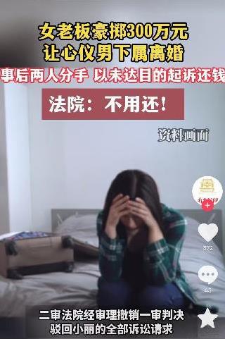 重庆,一女老板和男员工同居后,去找男子妻子谈判,给出300万的条件让他们离婚,原
