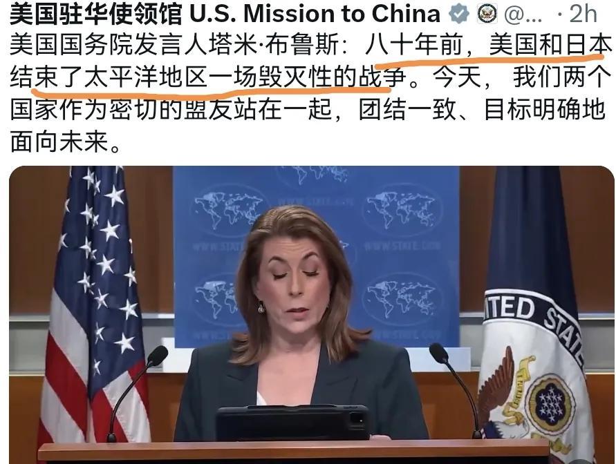 美国的表态,真是匪夷所思!8月6日,美国国务院发言人塔米·布鲁斯表示,八十年前,