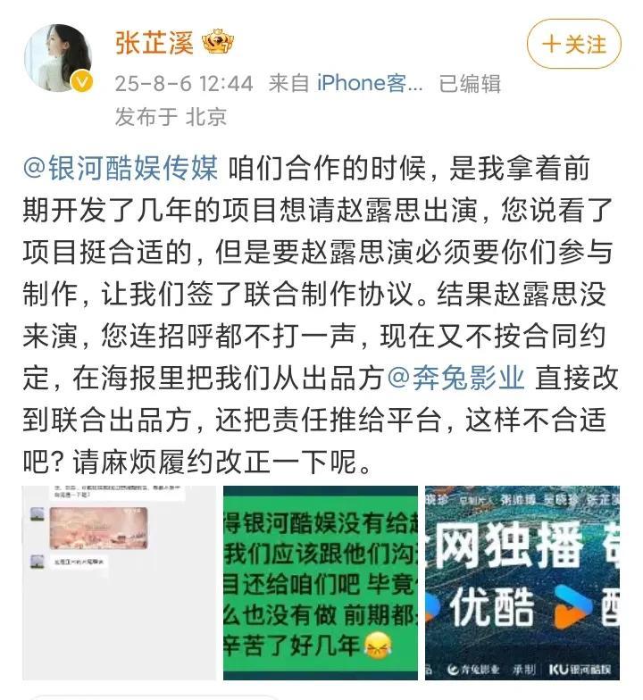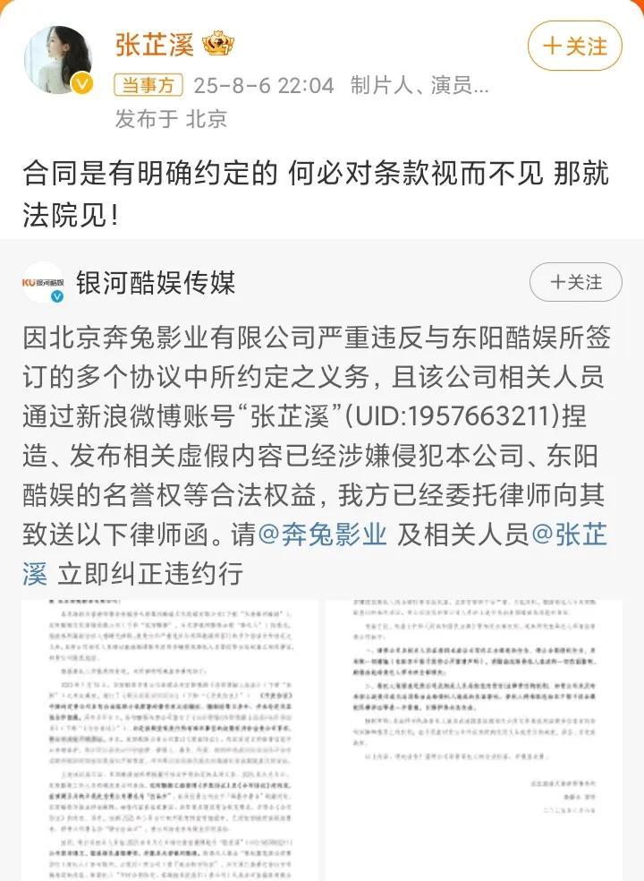 赵露思和张芷溪都是同一类人,难怪能走到一块。 赵露思想解约,不想赔违约金也不愿走法律程序,整天就幻想着利用网友煽动舆论实现0成本解约的目的; 张芷溪也是,指责银河酷娱不履行合同却也不走法律程序,同样通过舆论配合赵露思施压; 按赵露思和张芷溪的说法,银河酷娱就是违约,那这还有什么好犹豫的,直接告啊。 一边说银河酷娱不遵守合同,一边却不愿走法律程序,真是奇了怪了,千万别说有些约定没写进合同,凡是有点法律常识的人都知道,凡是没写进合同的约定,是不被法律保护的。 另外,如果说有约定但没写进合同,那谁知道到底有没有这个约定?谁知道你是不是说谎呢?