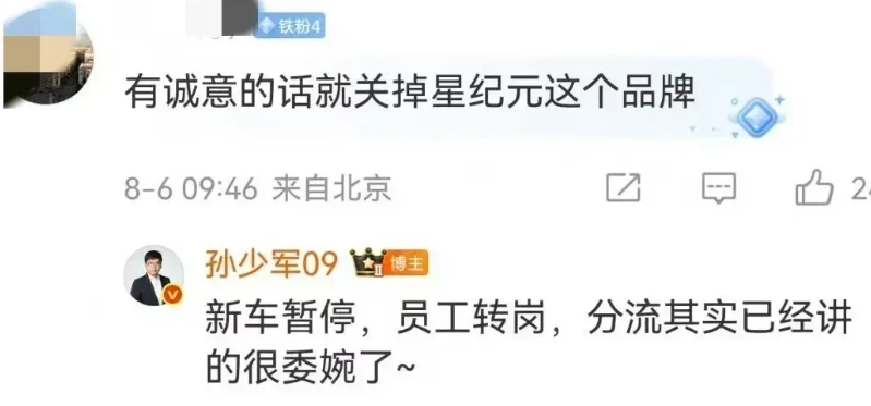 孙少军称:奇瑞已正式全面投入智界,新纪元团队开始分流了。