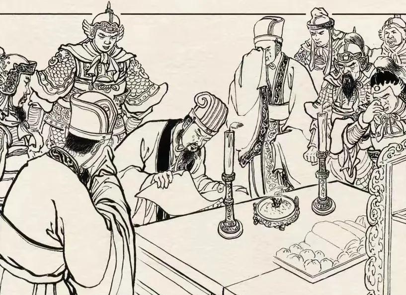 诸葛亮设巧计三气周瑜,周瑜气愤难奈哀呼:“既生瑜,何生亮!”周瑜死后,吴国上下举哀。诸葛亮知悉后决定过江吊孝。 诸葛亮一到柴桑,以程普为首的东吴大将,个个拔剑以死相拼要杀诸葛亮,但都慑于赵云威力,不敢造次。在新任都督鲁肃的引领下,来到周瑜灵堂。 诸葛亮在周瑜灵前念了祭文,伏地大哭,哀悼周瑜风流倜傥、才华横溢,叙说二人同心合力共破曹军,叹惜自己痛失挚友再无知音。东吴众人听了深受感动,无不落泪。鲁肃心想:孔明如此重情重义,原来是公瑾气量狭窄,容不下孔明啊!这样一来,鲁肃不好意思再提归还荆州之事了。 祭奠已毕,诸葛亮来到江边,正欲乘船离去。突然有人拍了他的肩膀说:“你害死周郎,又过江吊丧,这明明是欺负江东无人!”诸葛亮大惊,回头一看,见此人头戴竹冠、身穿道袍,不觉大喜:“原来是你!”