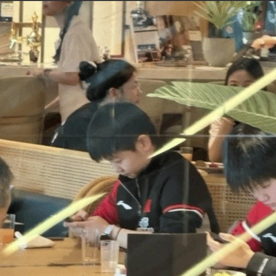 孙颖莎清晨带着三名小队友去餐厅,被球迷一把抓拍,