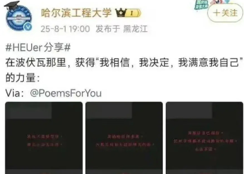 必须要说的一点是我国院校办学理念应该是男女平等一视同仁,而非基于打拳政治偏袒一方大和稀泥。各大院校官方账号代表的应该是院校本身气质形象,诸位皮下运营抱团表达个人观点纯纯就是公器私用夹带私货。而现在各大院校官方账号皮下运营在短时间内集体引用波伏娃语录,说白了就是领导团队宣传主导功能已经被架空,公器使用与院校表态正处于不受控状态。