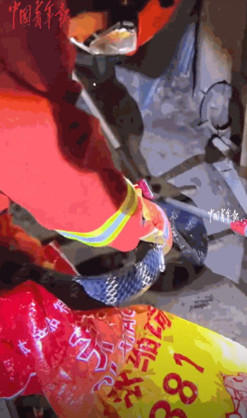 抓捕过程惊险万分,那蛇像是被惹毛了,突然窜出去老远,差点把守门的小伙子撞个跟头,好在两名老手经验丰富,一个控制蛇头,一个制住蛇身,配合得天衣无缝。