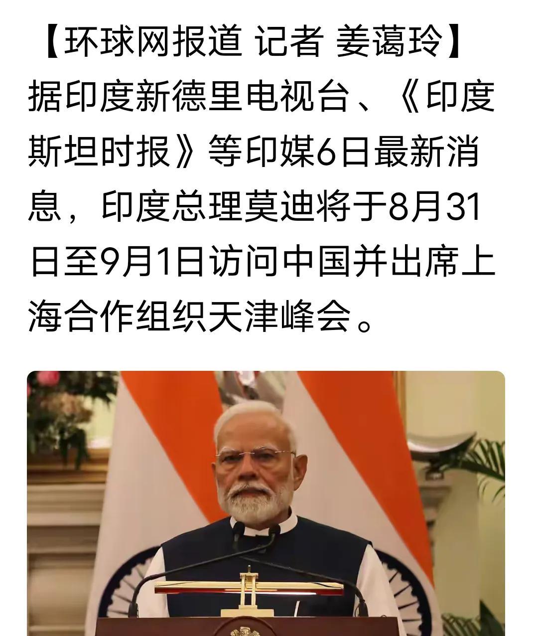 莫迪终于想明白了,单凭自己和美国掰手腕还不行,借上合峰会访华借力使力,才是聪明的选择。 印度官媒已正式放出消息,莫迪将于8月31日至9月1日访华并出席上合组织天津峰会。 莫迪此访不仅能改善和加强与中方的关系,还能借机与普京见面,甚至不排除中俄印举行三方会谈的可能,这绝对是美国不愿意看到的。 莫迪是游走在大国之间的高手,况且印度也是仅次于中美俄的大国,面对俄乌和关税两场战争,莫迪彻底看清了特朗普的阴险,明白了印度在美国人眼里的地位。 事实上,中印合作才是明智之举,远水难救近火,远亲不如近邻,面对霸凌霸权唯有合作才是上策。