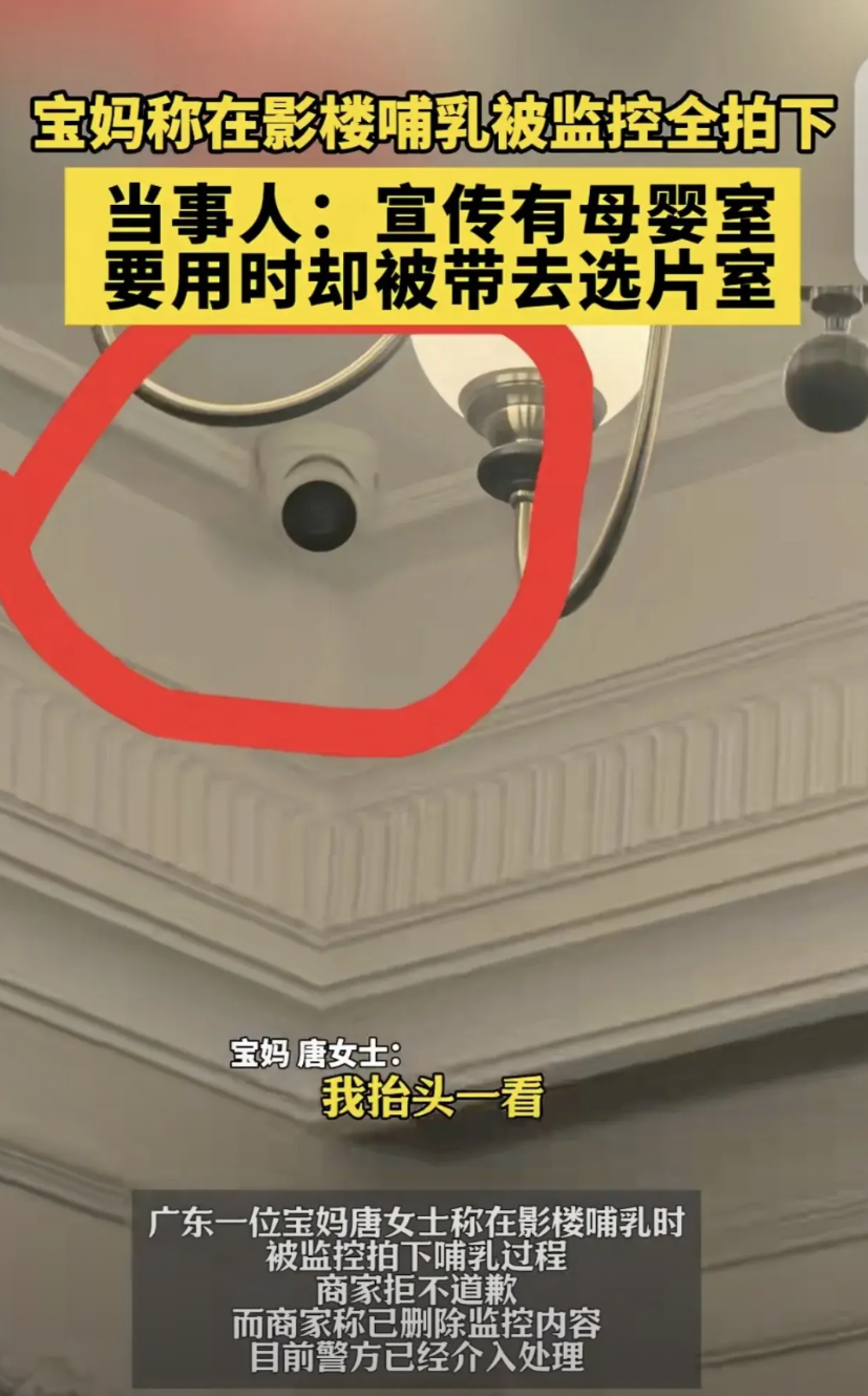 广东东莞,一女子带娃去影楼拍照,她想给娃喂奶,工作人员把她带到选片室,她撩起衣服喂饱娃,一抬头心里咯噔一下,头上竟然有个监控,把她喂奶的过程拍的一清二楚,女子气坏了,要求影楼删除监控,对方却辩称监控没开。女子才不信呢,她报警后发现喂奶全程被拍了下来。而影楼的态度,让她火冒三丈。
