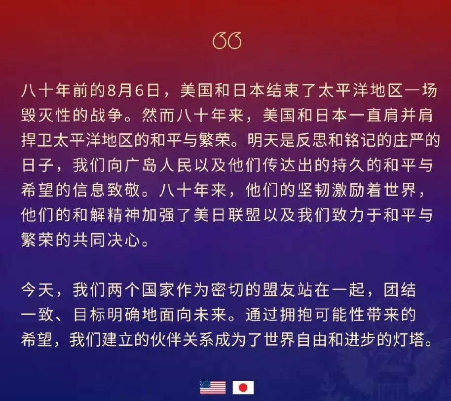 鹰酱是会说话,愣是把黑的说成白的。不管说得再怎么拐弯抹角,避重就轻,也掩盖不了事实真相。 而事实就是,80年前,鹰酱第一次使用核弹,无差别的让小日子几十万人灰飞烟灭,死无全尸,就是这位发言人口中的共同结束了一场战争。 80年来,小日子对鹰酱服服帖帖,唯命是从,对于这天大的仇人不计前嫌且誓死效忠,这为啥?打服了打怕了呗。 对于畏威而不怀德者,该如何应对?就该这么办。