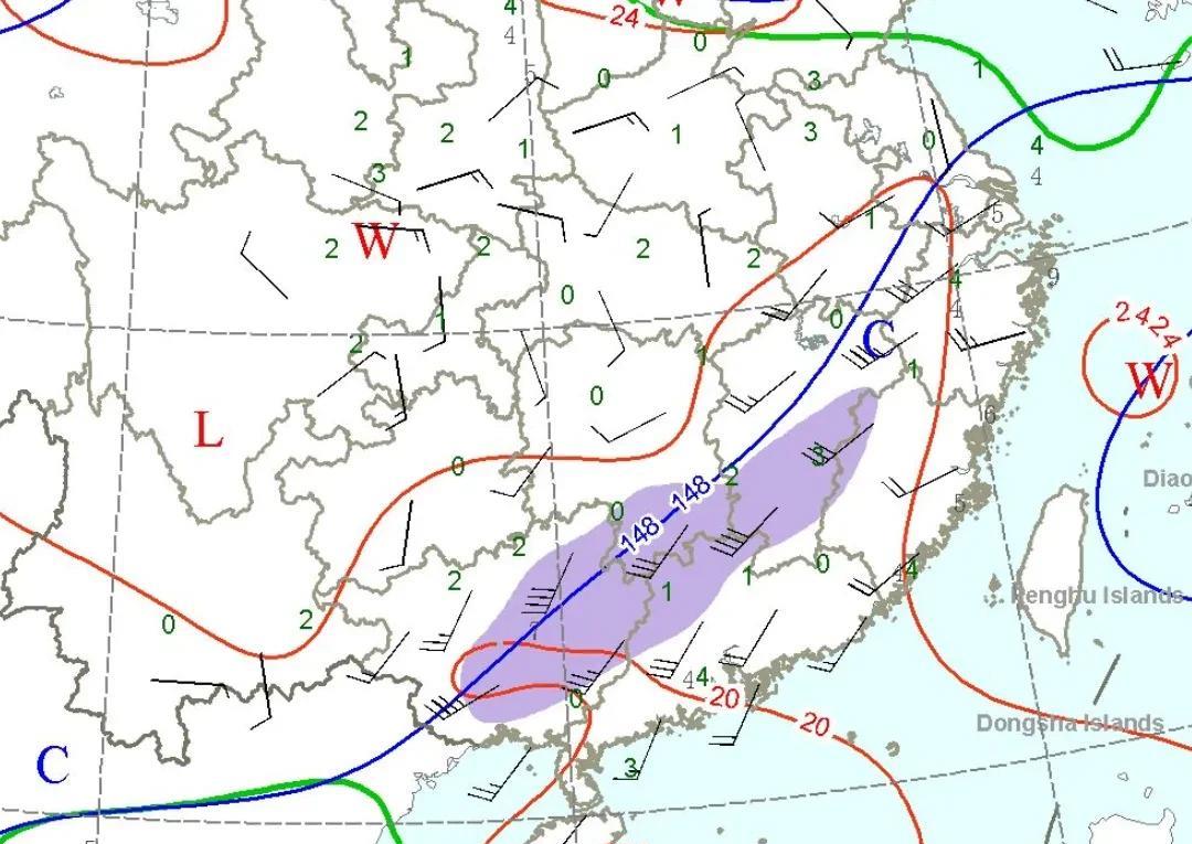 从今天的天气图实况来看,今天我国不光是有副热带高压的影响,而且在西藏、青海以及四川一带高空 200 百帕还能清晰的看到陆地高压。 和前几天不同的是今天副热带高压还控制了广东东部,除了韶关,今天广东其他地方的降雨也就结束了。 不过还是感觉今天的副热带高压稍微有点虚胖,从 850 百帕流场图来看,广西、贵州、湖南一带还是有一些水汽进入,而且还有部分微量的水汽进入四川中东部到重庆一带。【图 6】 从最新的卫星云图来看,今天广西 、广东北部、 贵州南部、湖南一带有云层覆盖! 从雷达回波来看,今天广东境内就只有广东韶关、广西桂林以及贵港、玉林一带还有一些降雨。 今天上午 10 点, 前几天还火热一般的川渝,已经退出了全国温度排行榜前十。 上午 10点钟, 重庆主城沙坪坝温度只有31.1 度,重庆垫江31 度。