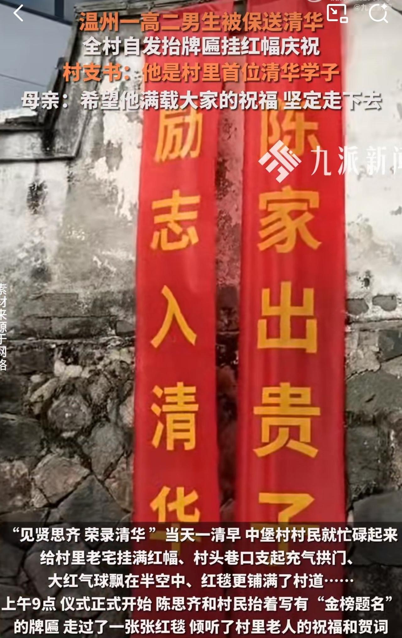 “真牛!高二就保送清华大学!”近日,浙江温州永嘉县中堡村为高二学子陈思齐举办了热