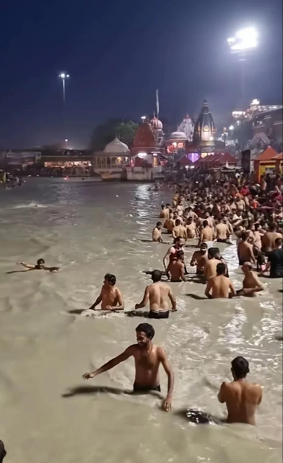 印度的母亲河恒河,印度的人民浸泡在水里,他们也不嫌脏啊,水咋成了这个颜色呢?