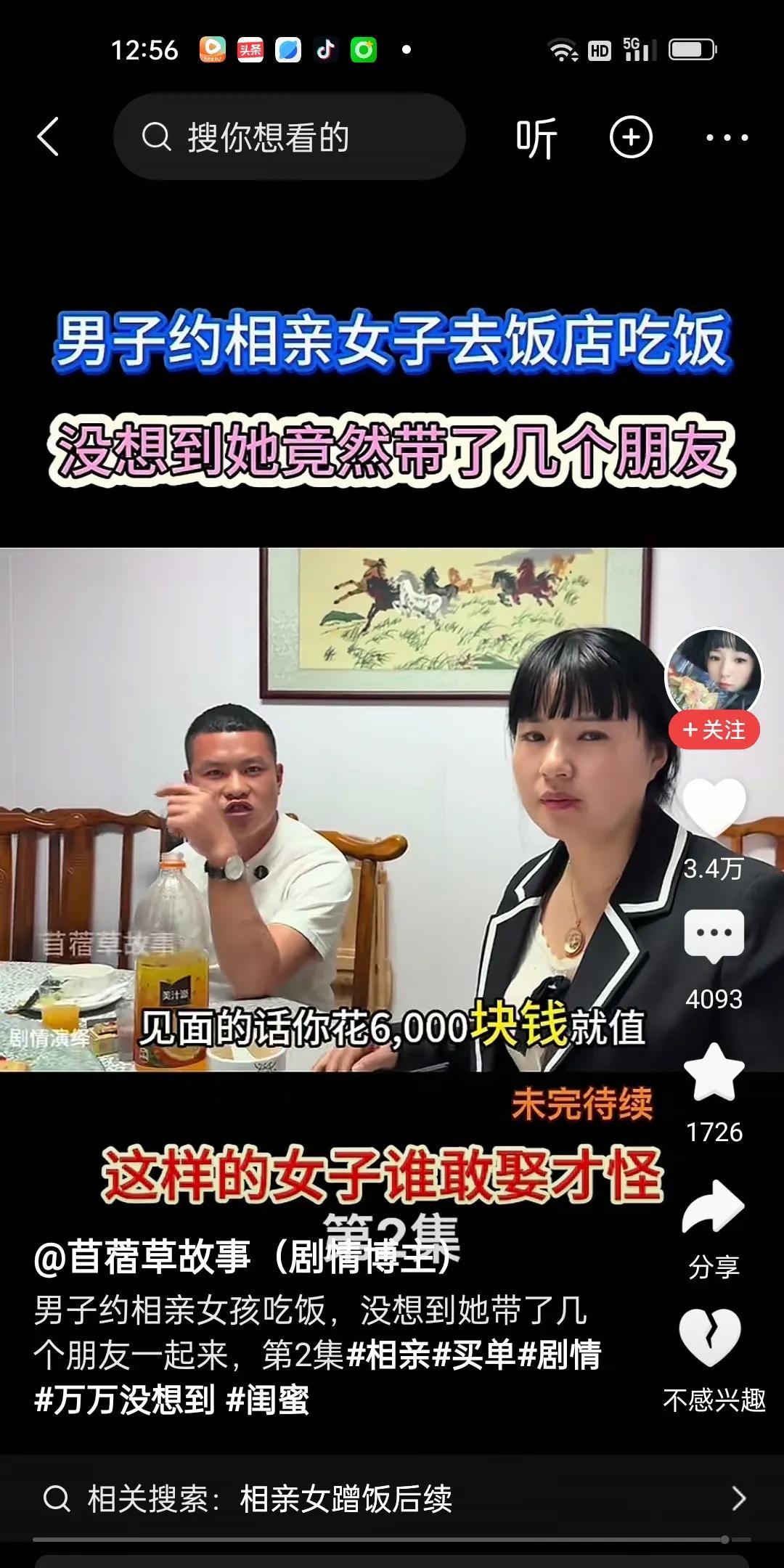 男子和女人第一次见面相亲。女人带了五个男闺蜜一起。男子和他们一起吃完饭,正准备走。女的叫住了他,把单买一下。男的问我买单,你带这么多男朋友让我买单?女的问我是不是和你见面相亲,你不买单谁买单?就6000块钱而已,赶紧买了。这男的被女人狠狠地宰了一顿,太年轻了,人家明显就是带人来蹭饭的。