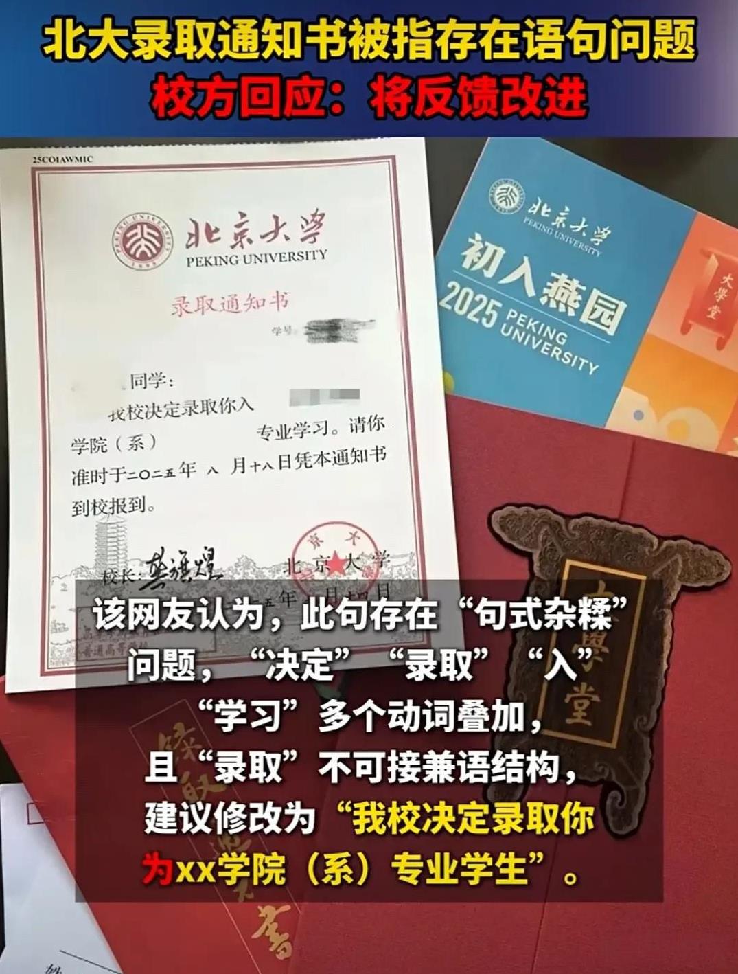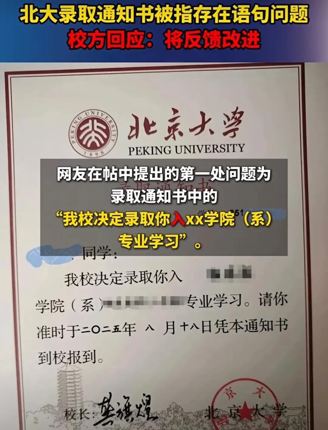 北京大学“两句话”的高考录取通知书居然出现令人大跌眼镜的语句毛病,真的让人匪夷所