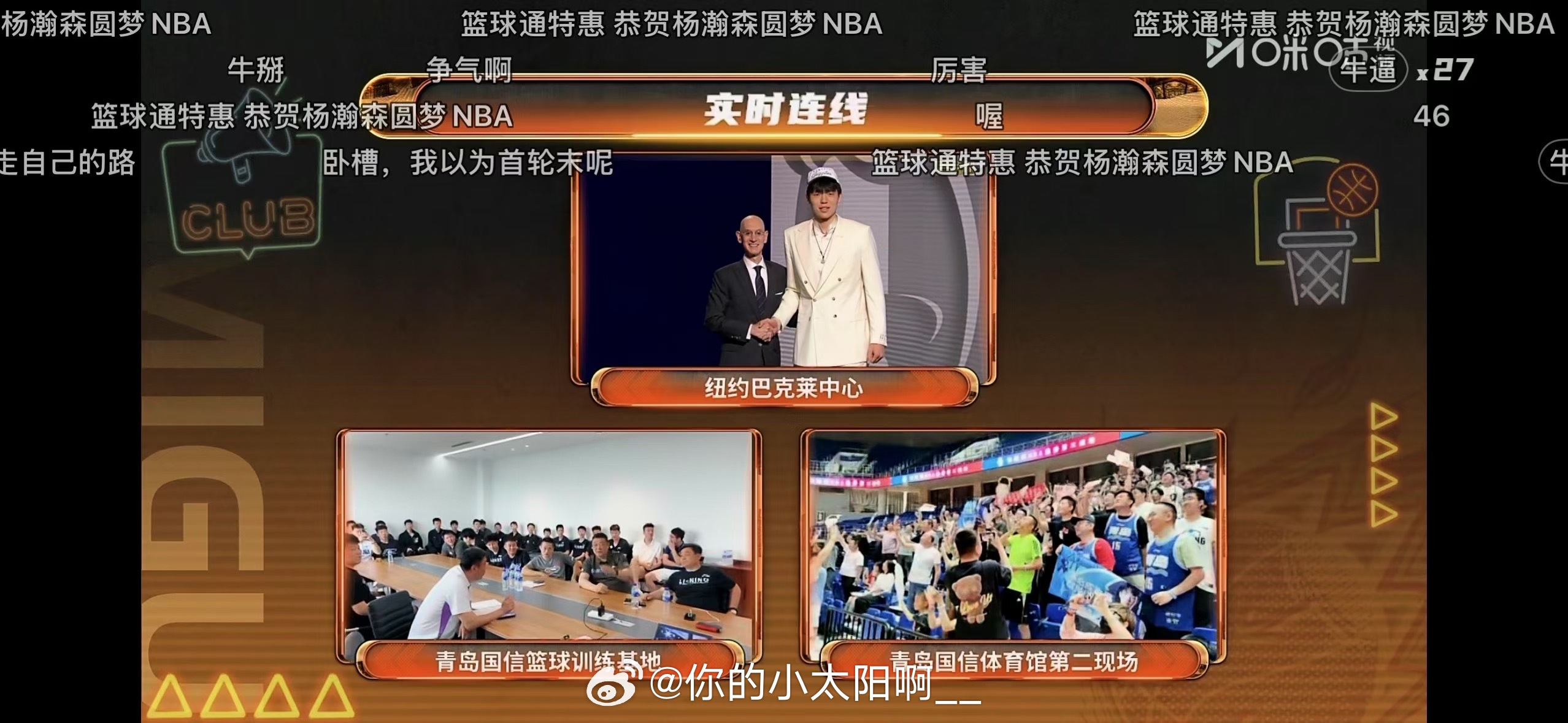 杨瀚森第九位被选中的中国球员NBA和WNBA现在都有中国球员杨瀚森第16顺位被选中看NBA上咪咕加油中国少年 ​​​