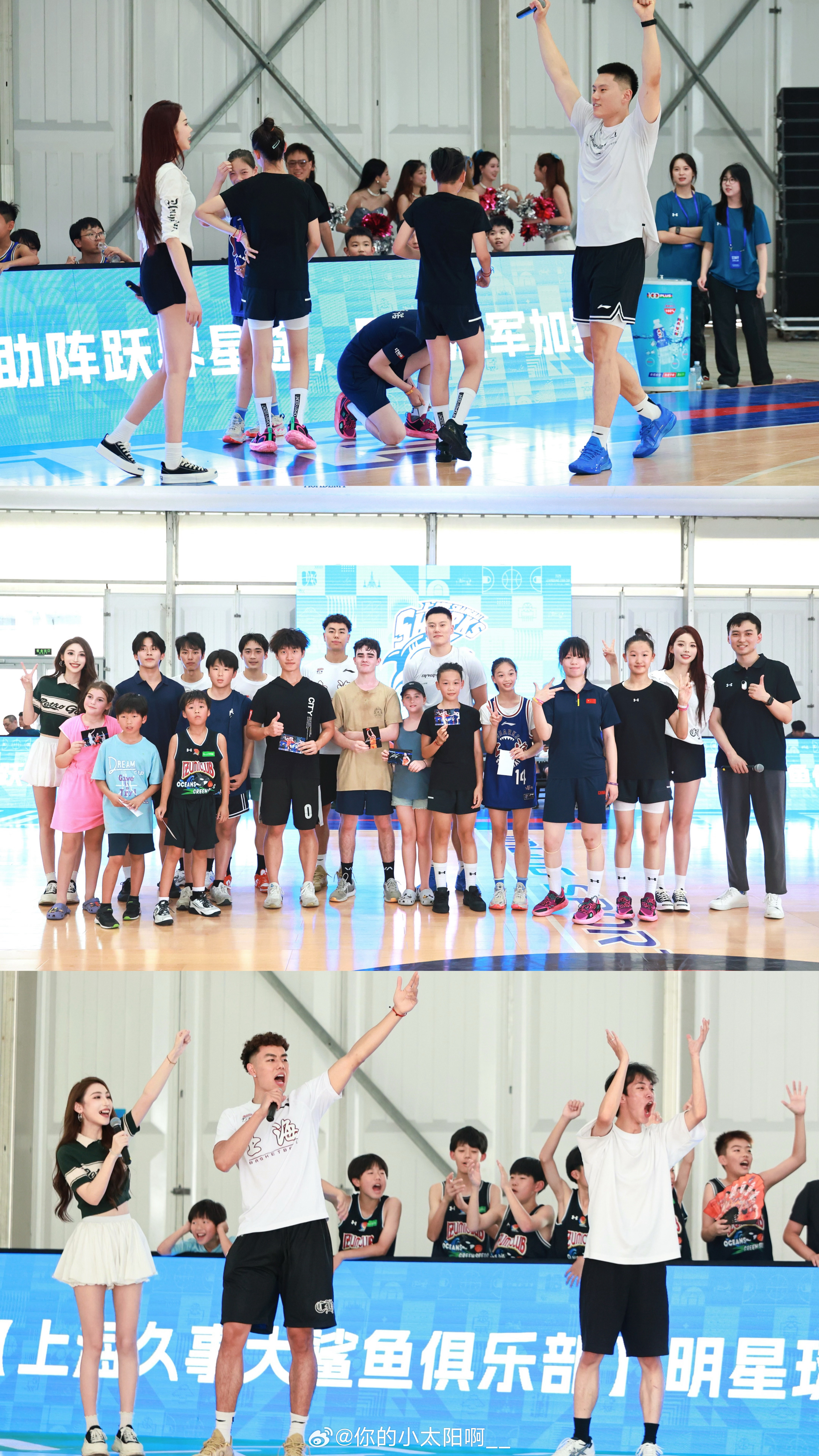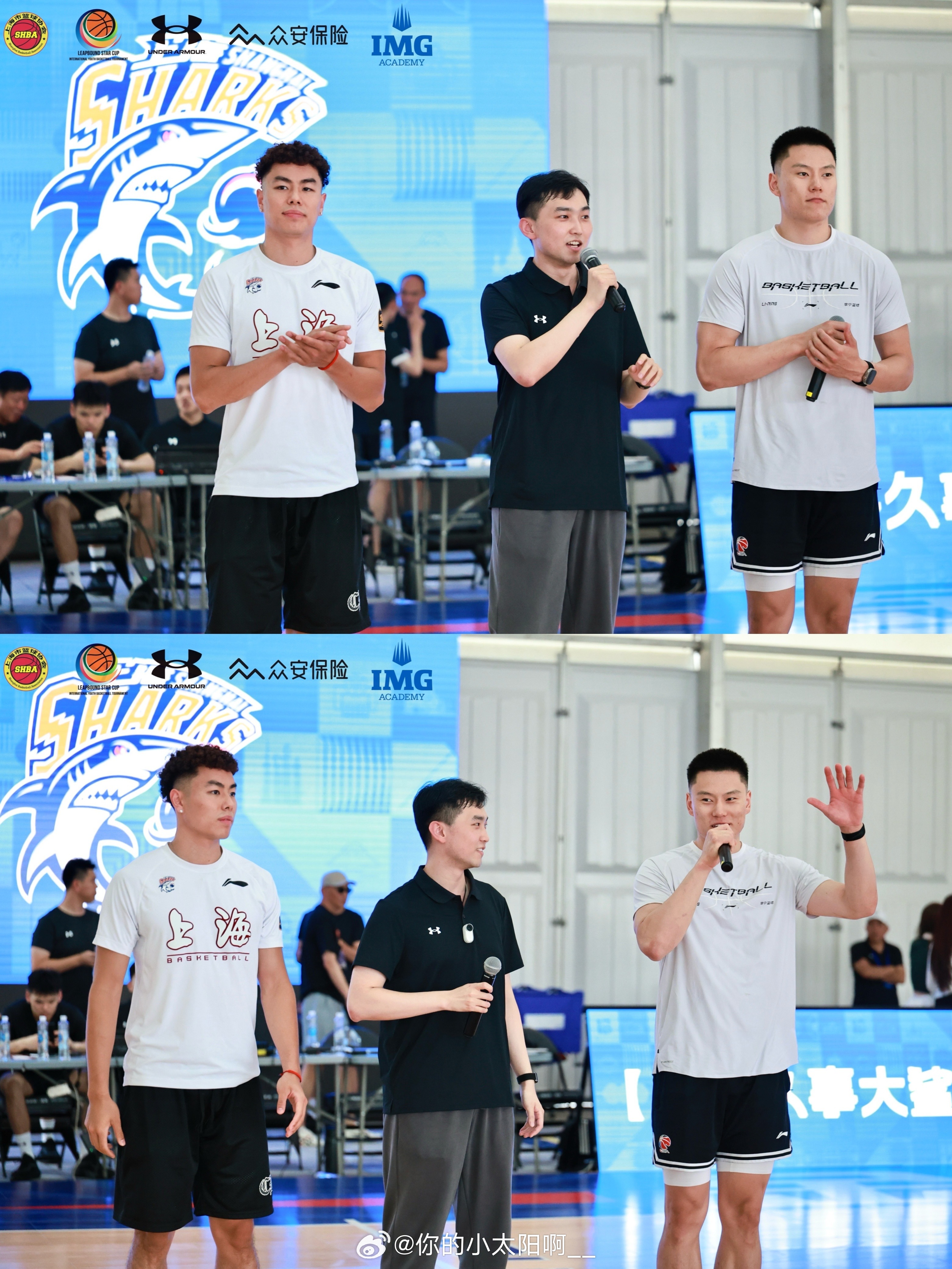 CBA上海久事大鲨鱼男篮·李弘权、李添荣⛹️♂️亮相比赛现场以教练身份和孩子们组成小鲨鱼战队🦈一起交流互动~!🏀