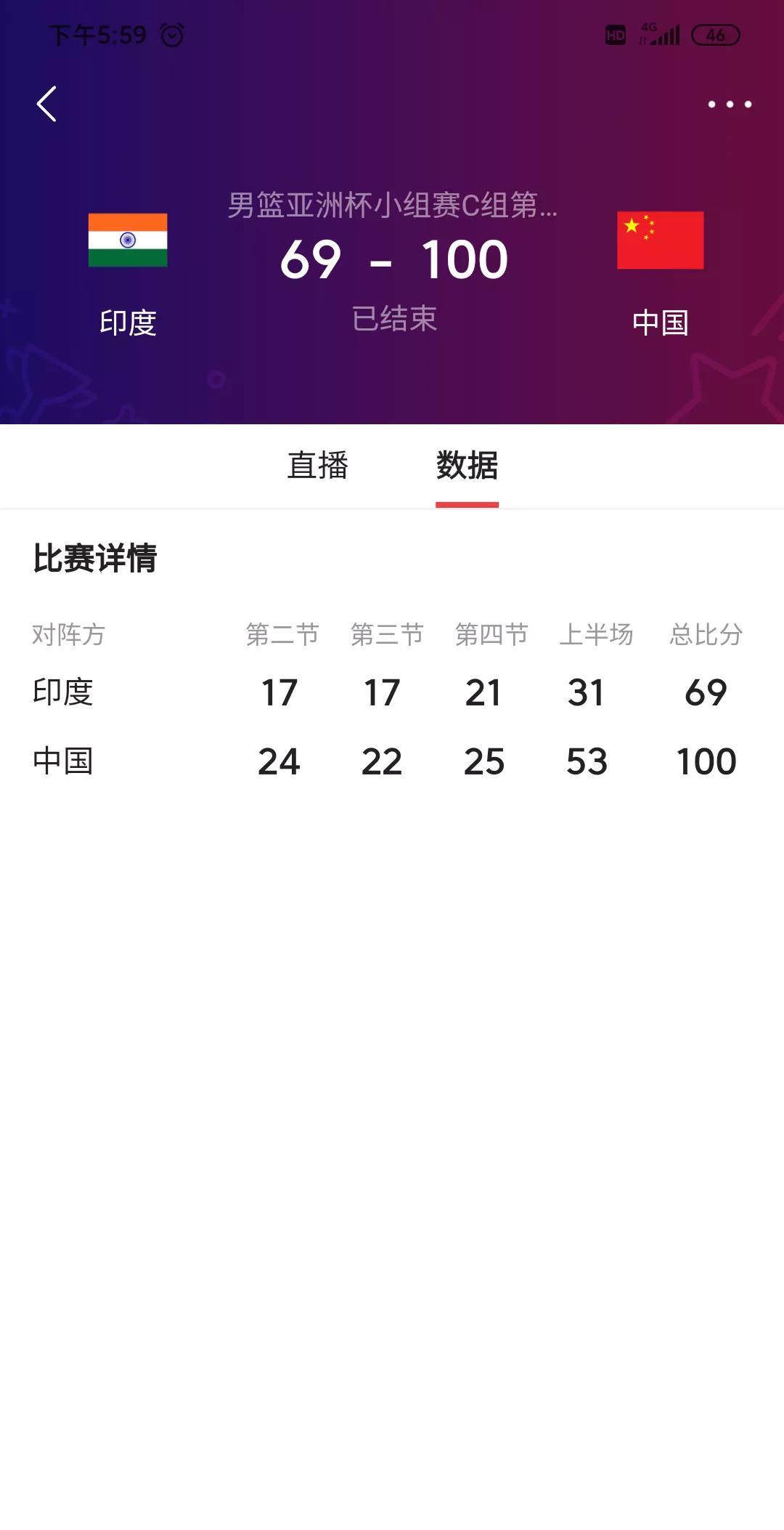 大胜对手31分,三大球只有足球不能稳赢印度! 亚洲杯小组赛第二轮,中国男篮100-69,让三哥心服口服! 本场比赛12名上场队员全部得分,6名队员得分上双,三分球命中率高达53%! 打印度就得全方面限制住他,一直压着打,不能给他们留翻身的苗头。 从最想碰的对手,到最失落,这就是印度男篮!