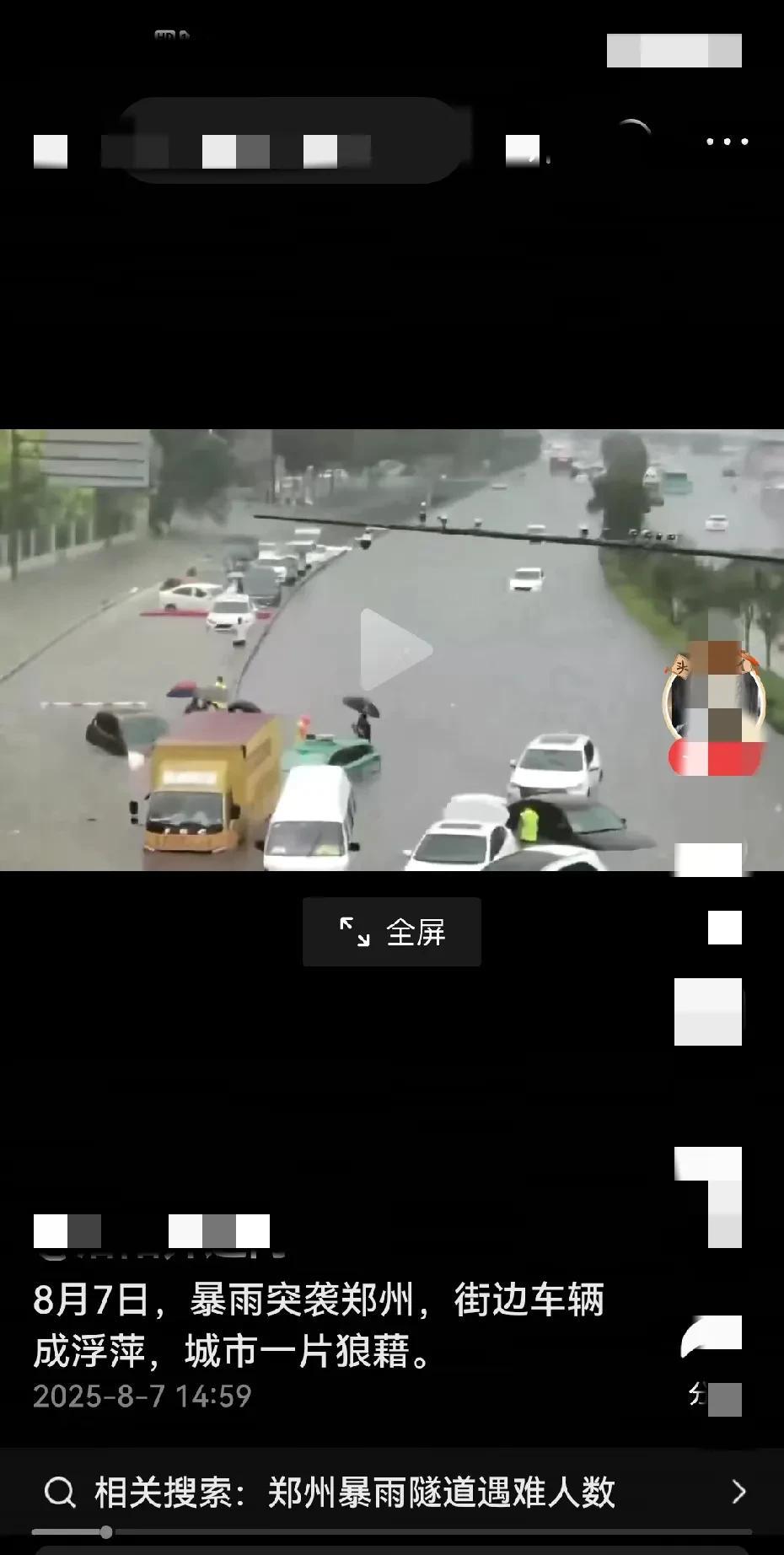 郑州下大暴雨的时候,真的很吓人。好多车辆被淹,像在国基路和中州大道附近,车泡在水