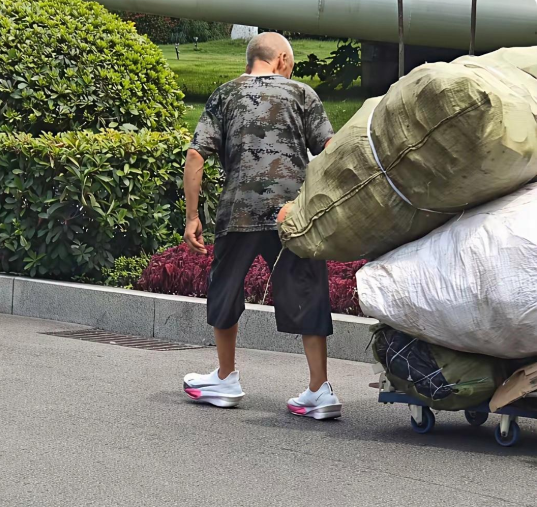 一眼过去,就被大爷脚上的鞋子吸引住目光了~