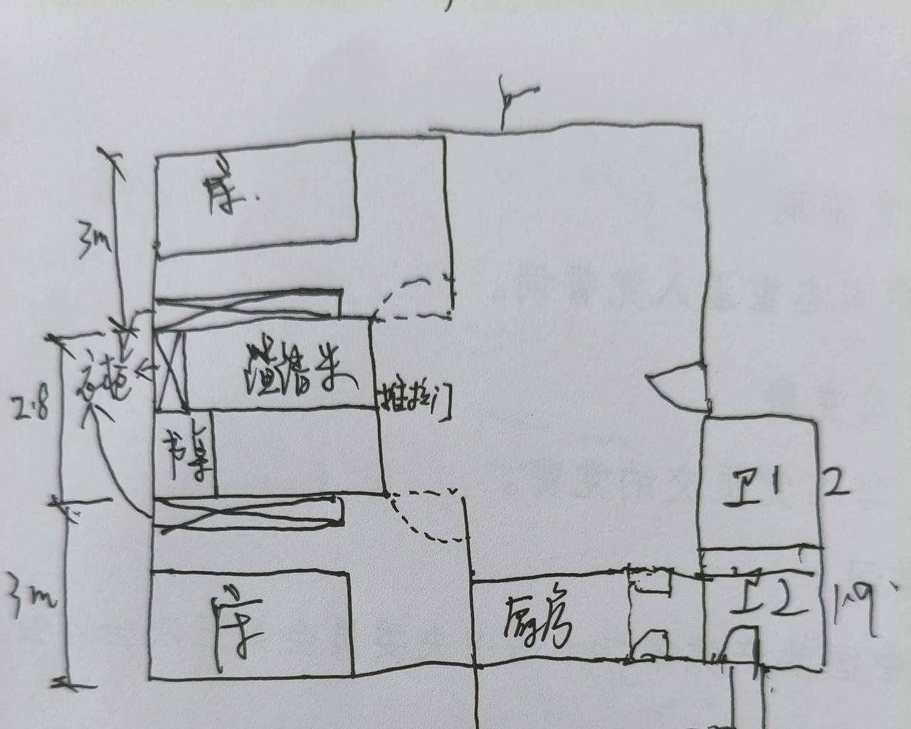 2室2厅1厨1卫改为3室2厅1厨2卫,大的格局基本上不用变,就是在一些小的方面做