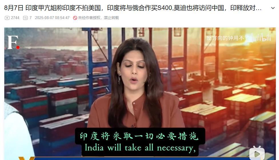 印度主持人说,印度不怕美国。 印度甲亢姐说,虽然美国总统特朗普把对准了印度,对印度加了50%的关税,但是,印度现在不怕美国的胁迫了,印度为了维护自己的国家利益,在军事和经济上,会继续强化和俄罗斯的合作,比如加大购买俄罗斯的S400防空导弹系统,这套武器在前几个月的印巴战争中,证明了它的强大。同时,印度总理莫迪已经决定月底访问中国。言下之意就是,尽管现在印度面临着美国的压力,但印度会选择中国和俄罗斯,与中俄合作,就可以不怕美国了。 说实话,印度这位主持人,真的是越来越有意思了,上次中美关税战的时候,她就认为印度的机会来了,她说印度的朋友遍布全世界,可以联合美国对抗咱们。现在局势一变,她又觉得,印度可以联合中俄,对抗老美,三哥身段是真的灵活啊,转变太快了,而且变得毫无心理负担,理直气壮[捂脸][捂脸]。