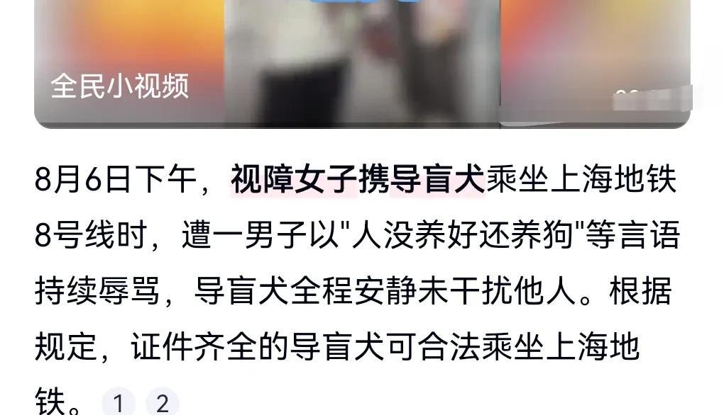 看来普法任重道远啊。 有些人连导盲犬都不认识。 近日,上海一女子携导盲犬坐地铁被骂。 这大爷真的是不分青红皂白,只知道是狗,而并不知道是一条温顺的导盲犬。 有人帮盲人说好话,没想到这大爷还是固执的很。 盲人是个不计较的人,提前带着狗下去了,狗狗有点失落。 真希望不要再遭遇这样的不友好对待了。