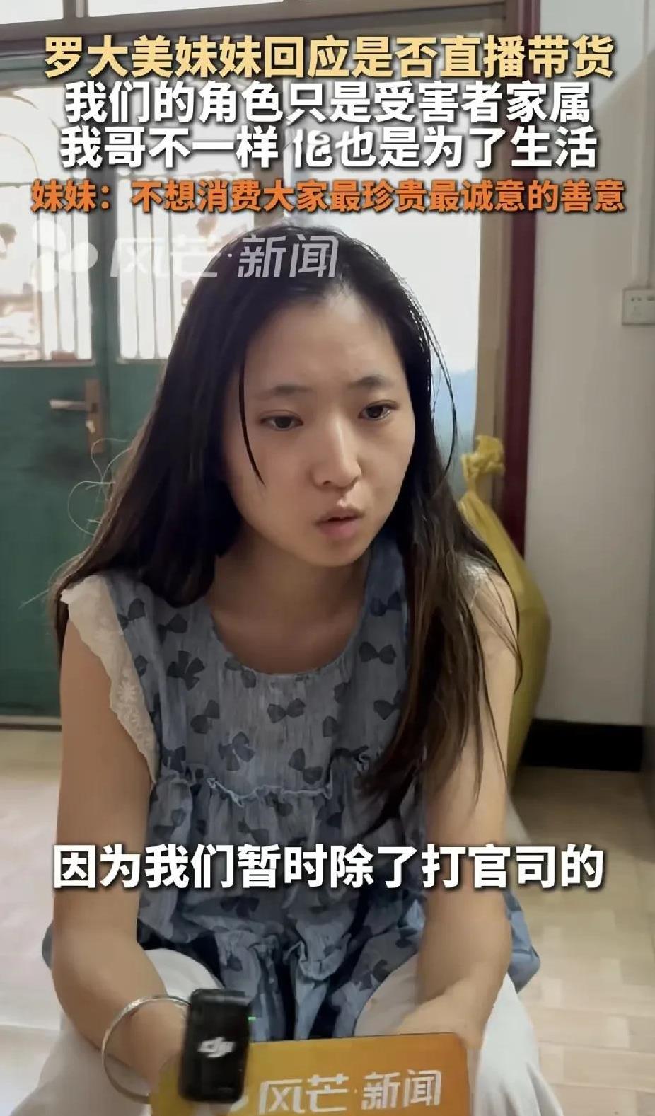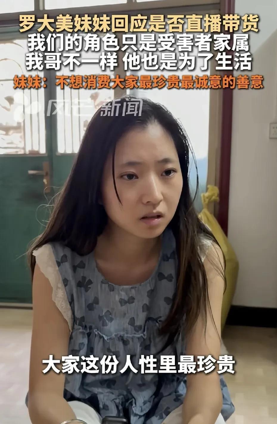 罗大美的妹妹称,如果此事结束以后她会带着爸爸妈妈离开家乡,去南方生活,会去江苏,她是在江苏上的大学,本科和研究生都是在江苏上的,她会在南方找工作养父母。 之所以带着父母离开家乡,是不愿意才让父母这么劳累走不出来这个环境,想让父母换个环境,另外她觉得南方生活更便利一点。 她的家乡就是许昌禹城一个山村,父亲养牛也会种地,去照蝎子和找知了壳卖钱,就是不让自己闲下来,有时候也会看到他偷偷哭泣,在一个地方一坐就是半天。 罗大美妹妹称自己不会直播带货,哥哥的账号只是她们的一个念想,也不需要大家捐款,她会好好工作,不愿意消费大家人性里最宝贵和纯粹的善意。 罗大美一家都很善良,太可惜和惋惜了… #罗大美遇难# #罗大美#