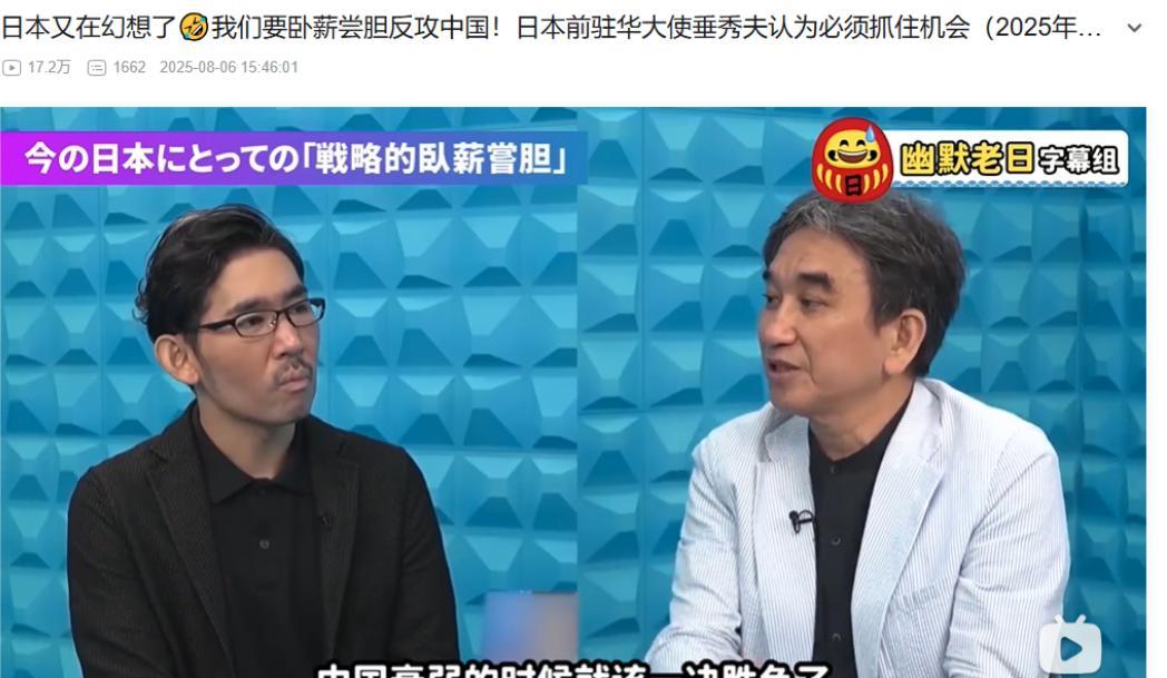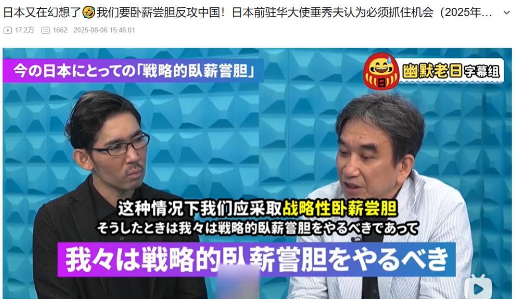 /小日本真是亡我之心不死。前阵子日本前驻华大使垂秀夫在政论节目里说的话,算是把那点藏着掖着的心思全抖搂出来了。他说现在中国实力强,日本得先忍着,“卧薪尝胆” 等中国衰落了,再跟咱们 “一决胜负”。这话听着就刺耳,尤其从他嘴里说出来,更透着股虚伪。 要知道,垂秀夫当驻华大使那阵子,可不是这副嘴脸。公开场合里,他总把 “中日友好” 挂在嘴边,参加活动时笑脸盈盈,说起两国文化交流还一套一套的。2022 年中日邦交正常化 50 周年,他还特意搞了个摄影展,放了不少他拍的中国街头照片,显得对中国多有感情似的。可转过头就变了调门,在日本本土节目里说这种话,合着之前的 “友好” 全是演的? 他说的 “卧薪尝胆”,说白了就是现在打不过,先攒实力。这几年日本的动作,早就暴露了这心思。防卫预算一年比一年高,2024 年直接飙到了 559 亿美元,比上一年涨了 16.5%,创下战后新高。花这么多钱干嘛?买导弹、改航母、建基地,哪一样不是冲着提升战斗力来的。 就说他们那艘 “出云” 号,原本是直升机驱逐舰,这几年偷偷摸摸改成了轻型航母,能搭载美国的 F-35B 战斗机。去年年底,日本又从美国订了 16 枚 JASSM-ER 巡航导弹,射程快到 1000 公里,还能低空突防躲避雷达。更别提 400 枚 “战斧” 导弹的采购计划,射程 1600 公里,明摆着是想具备远程打击能力。这些武器堆起来,哪是 “自卫” 需要,分明是在为 “一决胜负” 铺路。 不光是买武器,日本在军事布局上也没闲着。西南诸岛那些离中国近的小岛,这两年陆续建了不少弹药库和雷达站。2023 年还在冲绳县的与那国岛搞了个电子监测站,离台湾岛就 110 公里,全天候盯着周边海空动态。他们嘴上说 “应对地区安全挑战”,可这些动作对着谁,明眼人都看得出来。 这种 “打不过就先憋着” 的套路,日本历史上就玩过。甲午战争前,他们也是先闷头发展海军,一边跟清朝搞 “友好往来”,一边偷偷造军舰,最后在黄海海战里动手。现在垂秀夫这套 “卧薪尝胆” 论,跟当年的路数简直如出一辙,都是想靠隐忍攒够资本,再找机会下手。 可他们打错了算盘。现在的中国,早就不是当年那个任人拿捏的国家了。咱们的福建舰已经能搞夜间弹射起飞,歼 - 35 战机从弹射到超音速巡航就 2.1 秒,海军舰艇总吨位这些年更是稳步提升。真要比实力,日本那点家底根本不够看。 更重要的是,时代不一样了。现在讲究的是合作共赢,靠搞军事扩张、憋着坏心思算计别人,根本走不通。周边国家也都盯着呢,韩国对日本扩军一直警惕,连美国都未必真心愿意被日本牵着走。垂秀夫以为 “卧薪尝胆” 能等来机会,可实际上,这种抱着对抗心态的想法,只会让日本在错误的路上越走越远。
