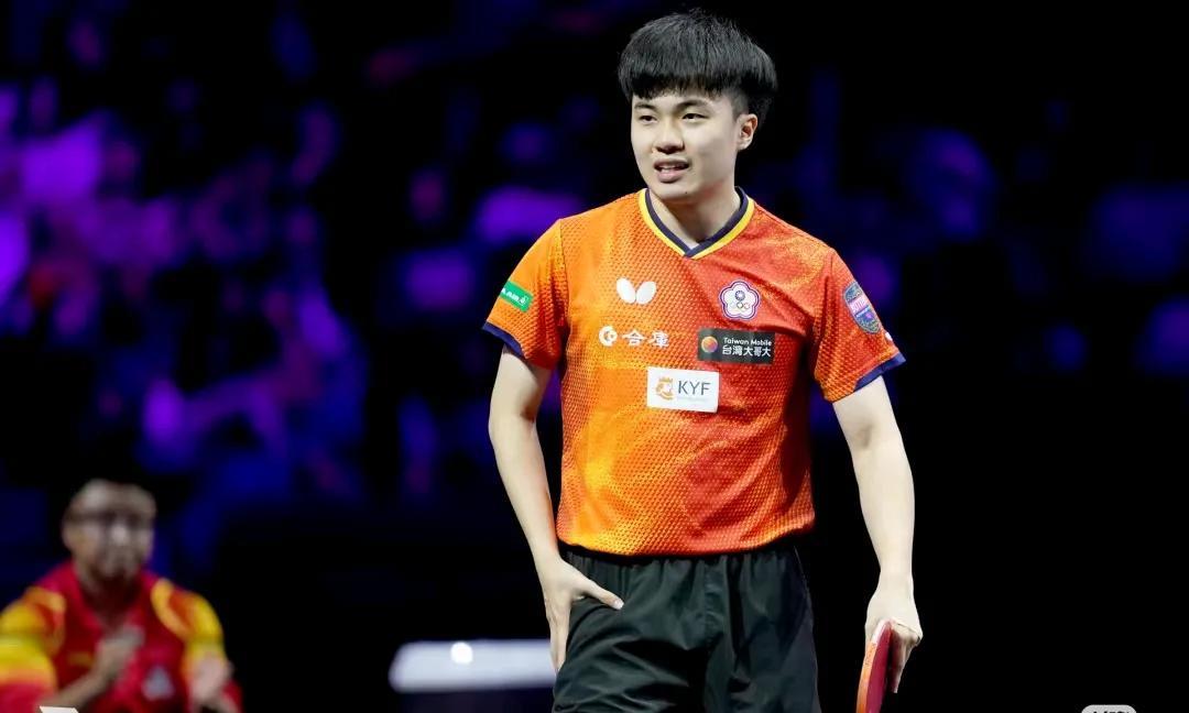 林昀儒救球时差点滑倒碰桌子上。 这次横滨冠军赛的地胶有点滑,昨天松岛辉空比赛时滑