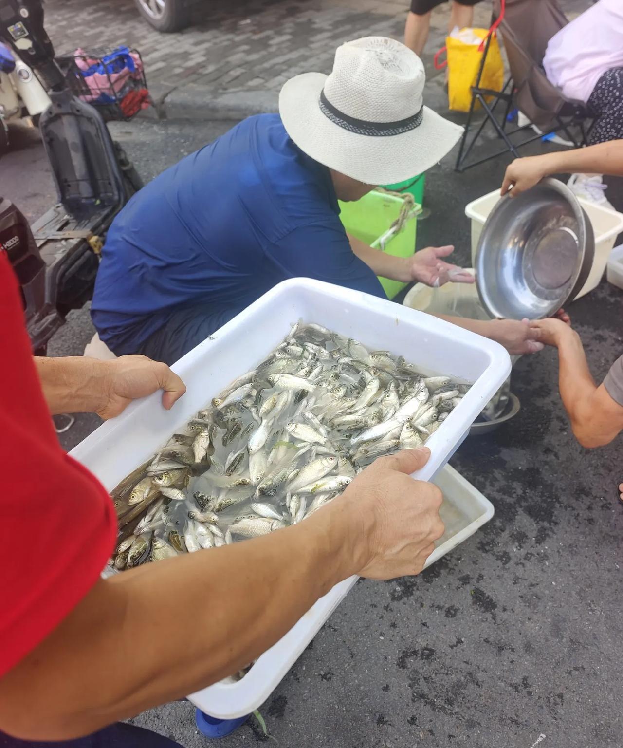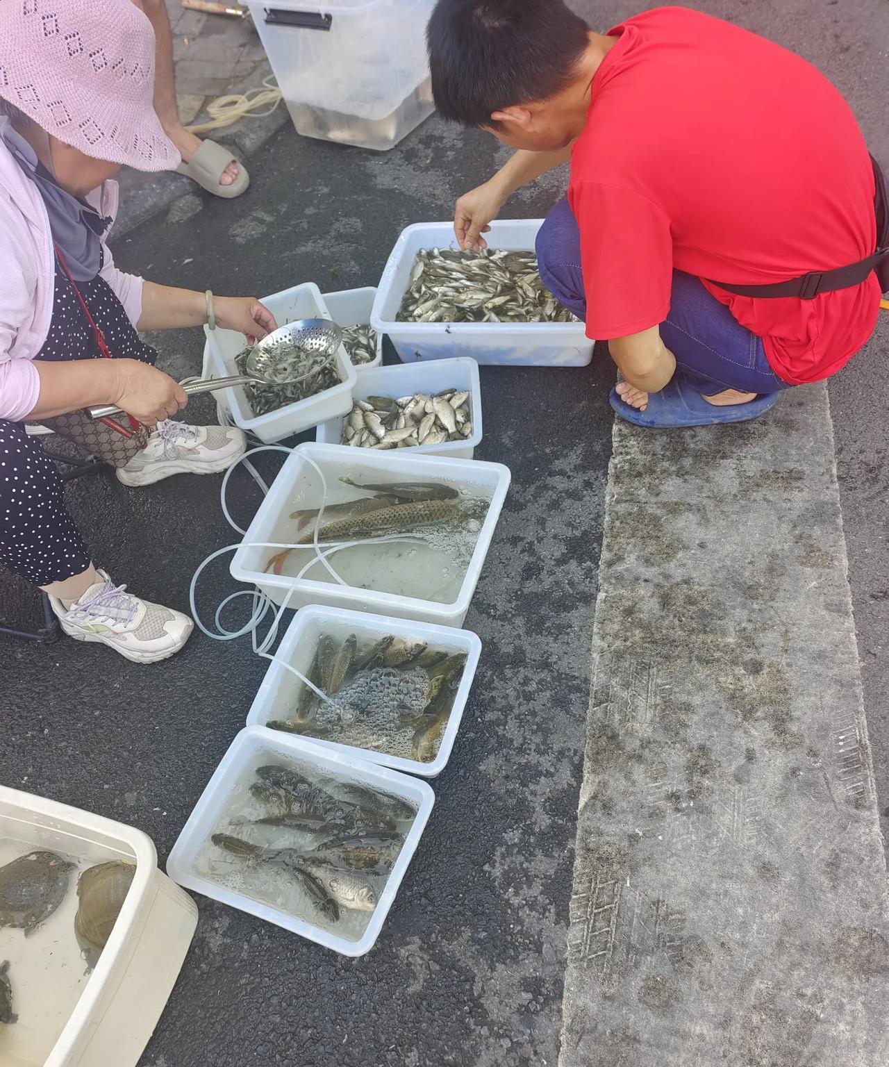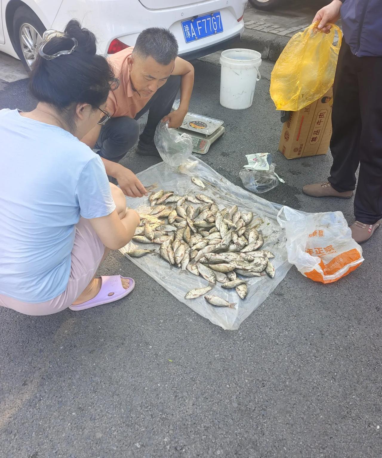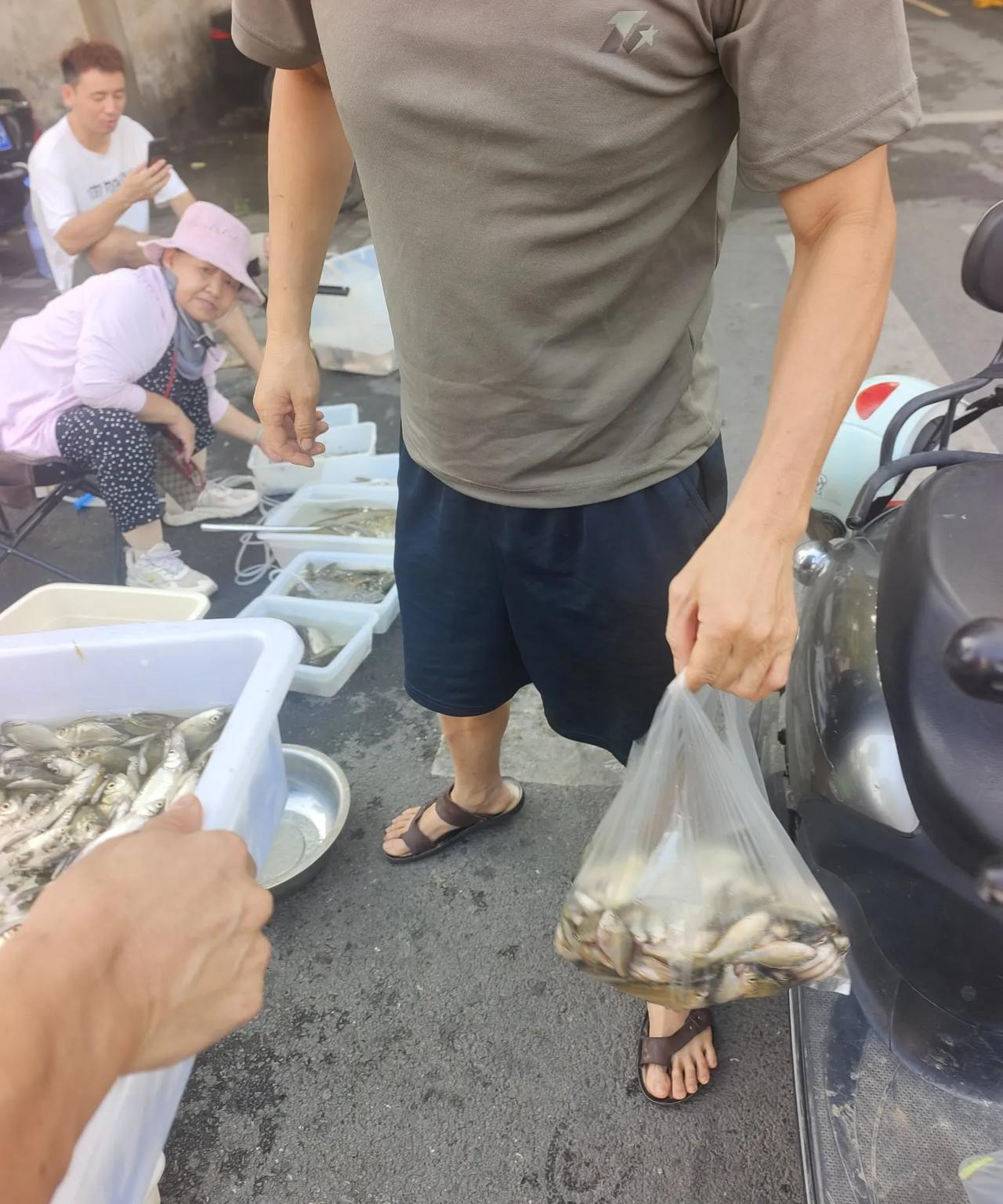 野生鱼太多了今天 今天上午7点我到菜市场买烧饼,看见菜市场门口路边两老