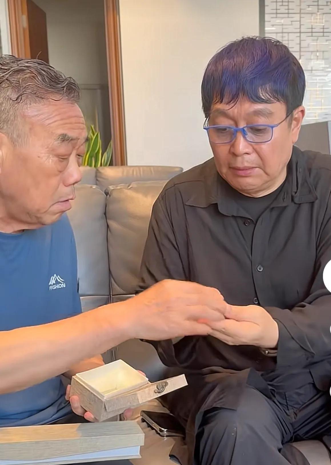导演王为念回国特地去到了公墓祭拜干爹杨少华,杨议三哥杨伦陪同。看得出王为念和杨家三大爷身体恢复得都不错。杨伦还把父亲生前用过的醒木和扇子送给王导做留念。