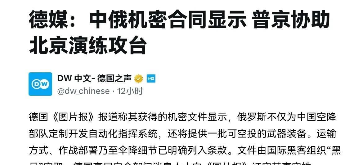 德媒表示,中俄已经在攻台计划上进行合作!8月8日,根据德国《图片报》报道,根据国际黑客组织“黑月”窃取的情报,莫斯科与北京在准备对台湾实施攻击的问题上密切合作,并至少已经进行到了极为详细的计划阶段。德媒表示机密文件显示,俄罗斯不仅为中国空降部队定制开发自动化指挥系统,还将提供一批可空投的武器装备。 而运输方式、作战部署乃至伞降细节已明确列入条款。合同涉及的武器系统包括,伊尔-78MK-90A与伊尔-76MD运输与空降飞机,此外合同还约定,所有军备物资应由俄方以海运方式运往中国上海港,或以空运方式送达由中方指定的机场。很显然,依德媒的报道,那就是在武力解决台湾问题方面,中国正借助于俄罗斯的军事装备,提升自身的攻台能力。 对于德媒的这一报道,我们怎么看呢?说实话,德媒的报道基本上就是毫无根据的胡说八道。为什么这么讲呢?台湾问题是我们的内政,内政问题,我们不会假手于人。所谓的中俄在攻台计划上进行合作,完全不可能。再者,从军事的角度而言,也不太可能。 事实上,不管是开发自动化指挥系统,还是空投设备,以我们现在的实力,我们都不可能依赖于俄罗斯。俄乌战争,俄罗斯的信息化作战是什么水平,各国有目共睹。信息化作战能力不足,这恰恰是俄罗斯自身暴露出来的一大短板。而至于运力投射方面,我们的运20及运油20的技术上全方面的超越了俄罗斯的伊尔76/78运输机。不管是起飞载重重量,还是航电水平,还是航程,我们的运输机能力都更强。 运-20最大起飞重量约为220吨,载重量约为60吨。伊尔-76的最大起飞重量在170-190吨之间,最大有效载重在47-50吨。而运-20加满油可在1.3万米高空以时速700公里连续飞行8000公里,伊尔-76航程一般在4400公里左右,航程较短。我们有更好的国产装备不用,用俄罗斯的装备,这可能吗?因此,德媒的报道除了造谣,就什么都没有了。这样的媒体捏造虚假新闻,让人不能不鄙视。 #头号创作者激励计划#