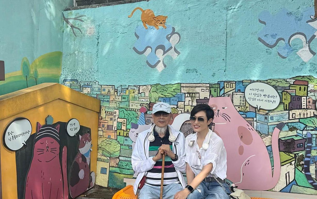 陈法蓉和90岁老父亲出去旅游,老爷子身子骨好硬朗,父女俩长得很像,而且都非常抗老