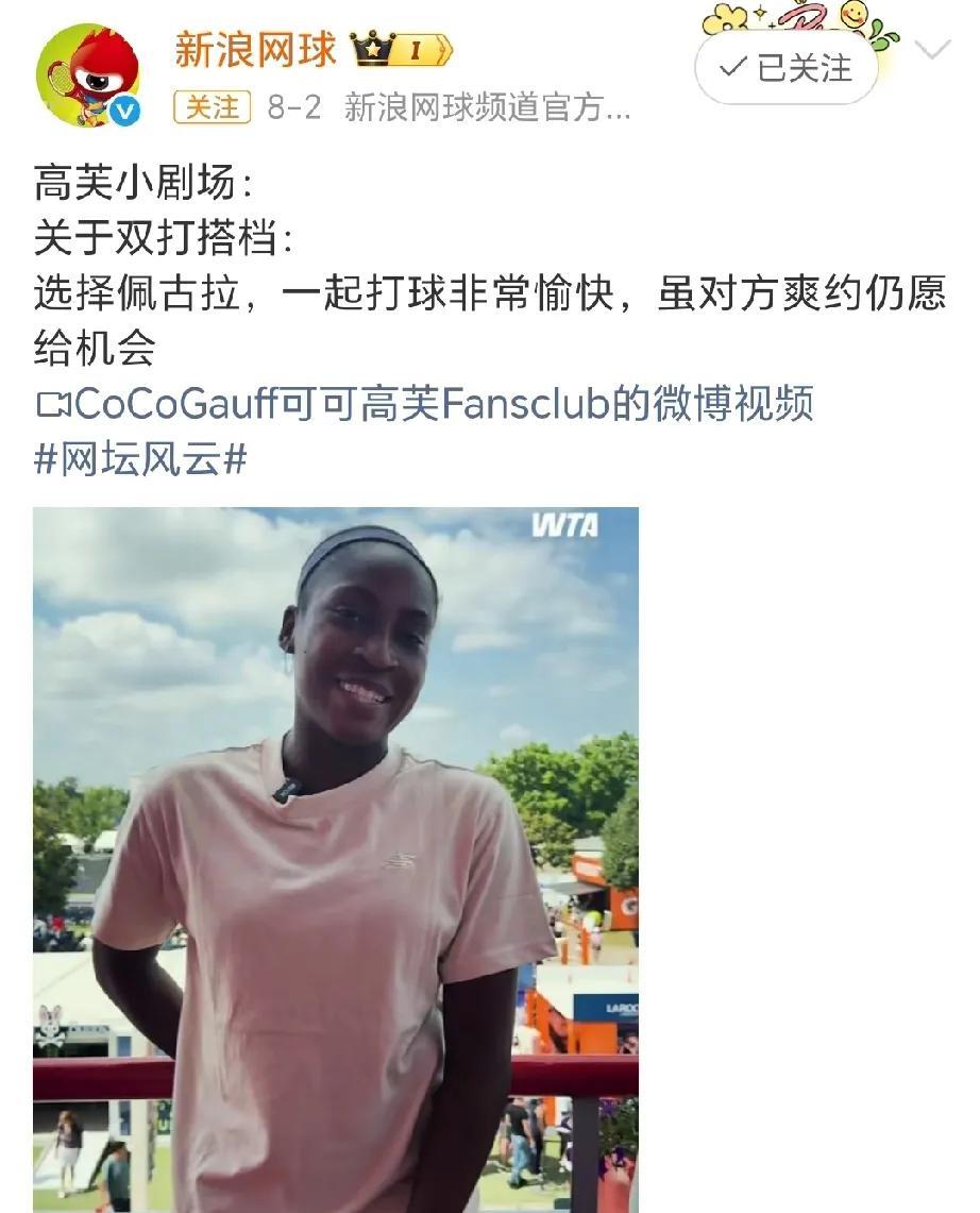 高芙/凯斯勒蒙特利尔双打夺冠,最开心的莫过于凯斯勒了吧! 首次和芙妹搭档,就旗开得胜,斩获自己的第一个巡回赛双打头衔,真是可喜可贺! 而最遗憾的要属佩古拉了吧。 蒙特利尔赛前采访,高芙坦言想和佩古拉搭档,但被放鸽子了,大富找凯斯参加双打了。 被爽约的芙妹很大度,说即使是这样也愿意再给大富机会。 这样有实力、有格局的高芙,你喜欢吗? #头号创作者激励计划#