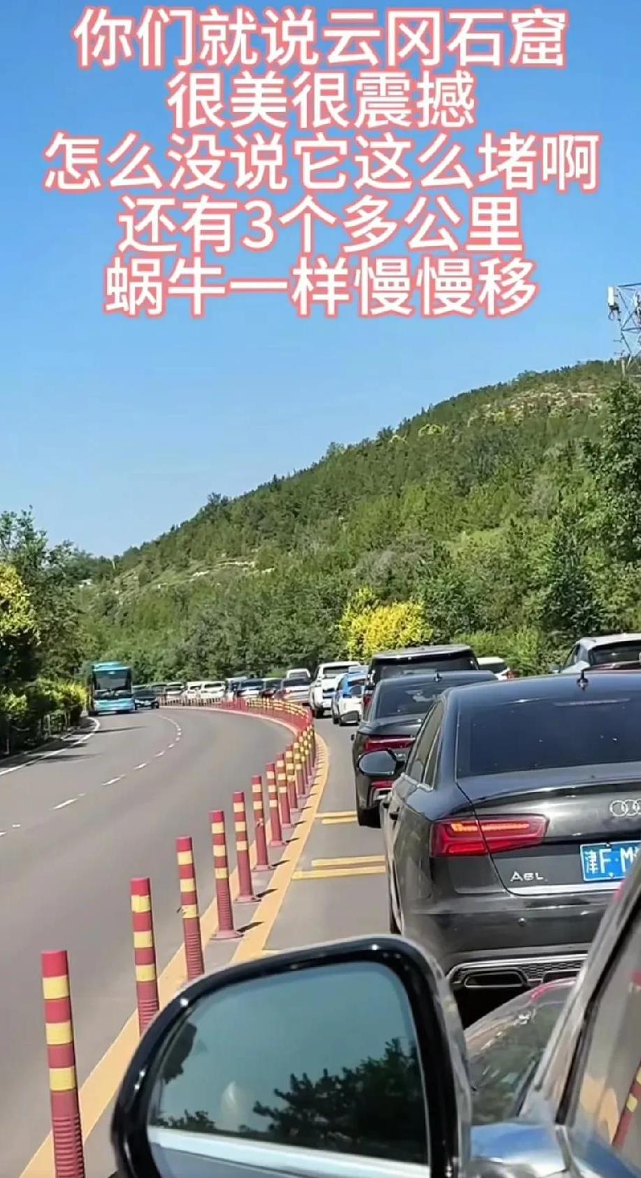 云冈石窟真的挡不住了。 看看大同五A级景区云冈石窟的火爆劲,早晨7点就开始迎接旅客了。游客多的汽车都堵的看不着尽头,没出市区就开始堵了,都没法停真头疼啊,有多少停车场也才容纳的下这么多的车呀。游客排队已经排到游客精疲力尽了,无论是下雨还是不下雨,都是那么多的人,云冈大佛看到这场面都发愁啊。 下一步大同相关部门怎么样想尽一切办法,尽快兴建更多的停车场,不然留不住游客,游客都跑了。网友们,你们说我是不是替古人担忧呀?