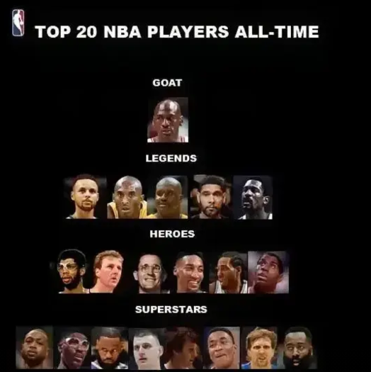 美媒:最新历史前20!詹姆斯第四档! 乔丹goat,库里,科比成为传奇,伯德,贾巴尔皮蓬成为英雄。詹姆斯,韦德是超级球星。 值得注意的是,很多美媒把詹姆斯排在坐二望一的位置。这个媒体竟然把詹姆斯排在第四档,和韦德,诺维斯基,哈登,约基奇的成为同一档。真是有点不可思议!詹姆斯不管荣誉和真实实力或许更应该更高的位置。