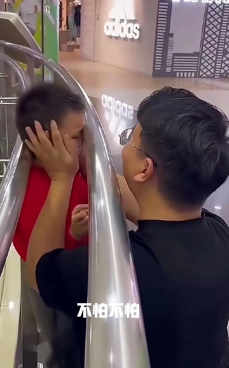 一小男孩卡在了护栏中间,因头太大而无法取出。消防员赶来后,劝他试着把头偏一偏,看