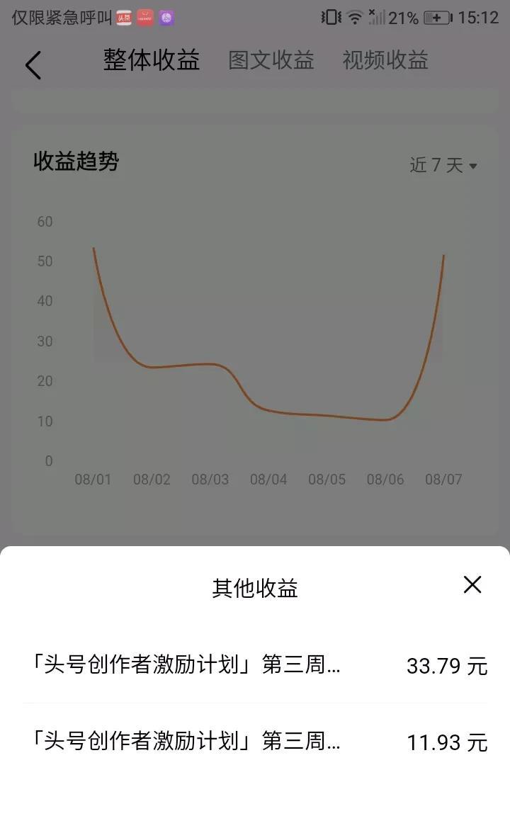 激动的心,颤抖的手,急忙点进去看收益来源,看了之后才发现,我昨天的创作收益只有6.18元,其余的收益来源于头号创作者激励计划第三周的奖励。 生活总是因为有不断的小惊喜发生而变得更加美好,今天就是如此,如果没有收到奖励,我今天看到的收益只有个位数,很惨的数据,会让我失去信心,也会有些许失望和难过,但是因为收到了奖励,虽然不多,但足以让我变得开心和幸福,所以,这奖励来的很及时呀,我很满足。 我跟老公分享了我的喜悦,说以后我还是要加油多写一写,坚持就是胜利,说不定哪天就会像今天一样,会有一小笔不少的收入呢,他笑话我没出息,说这点钱就把我收买了。 我在乎的是钱吗?明明是荣誉,哈哈。 你们今天收到多少奖励呢?评论区见。#头号创作者激励计划#