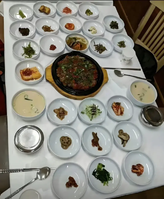 韩国人晒自己吃了一顿随意的午餐 这满满一大桌,摆放的还挺整齐,就是不知道他们水费