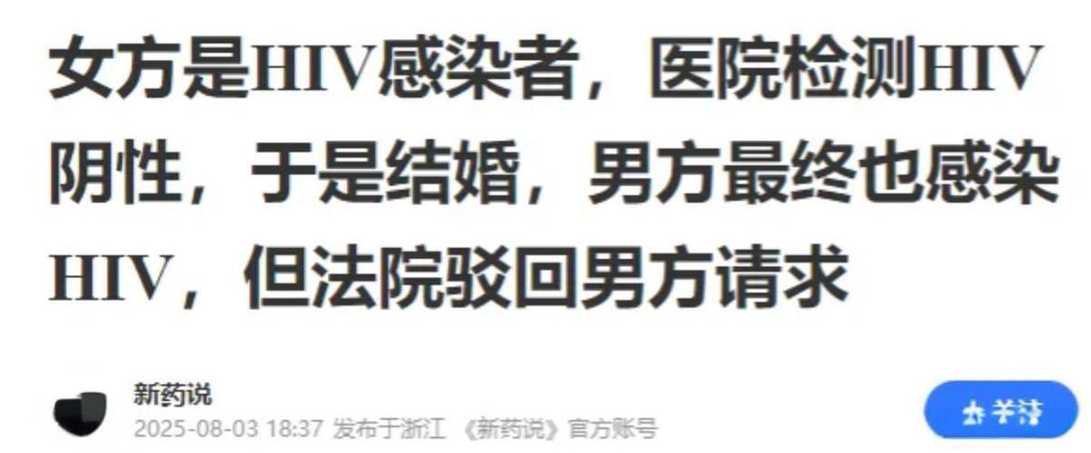 四川凉山,男子与女友在一医院做了艾滋病检查,在结果显示两人均未感染后便同居结婚。怎料,几个月后,男子再次检查身体却被确诊感染了HIV,又得知女友早就被疾控中心确诊为HIV患者,难以释怀,先是投诉、报警,而后又将女友及医院告上法庭,向女友及医院索赔57万余元损失。但法院这样判! 四川凉山那边,去年出了桩让人听着就揪心的事,有个姓孙的小伙跟对象处得挺好,俩人商量着结婚前,特意去医院做了艾滋病检查,拿到报告的时候,俩人都松了口气,上面明明白白写着,俩人均未感染。 这事儿一落实,俩家就开始张罗婚事,没过多久就领证办了酒席,小日子过得挺像样,谁也没料到,安稳日子才过了几个月,孙小伙就总觉得身上不得劲,低烧不退浑身乏力,一开始以为是累着了,扛了阵子不见好,才赶紧去医院做检查。 拿到诊断报告那天,他手都在HIV 阳性,医生说这病有潜伏期,让他好好想想最近的接触史,孙小伙脑子里 “嗡” 的一声,他跟媳妇感情好,除了她没跟别人有过接触。 他疯了似的往家跑,翻箱倒柜找线索,最后在柜子最里面发现了一板板药,包装上的名字他不认识,上网一查心彻底沉了,那是治疗艾滋病的抗病毒药。 他拿着药去问媳妇,一开始媳妇还嘴硬,后来实在瞒不住了,才哭着说自己早就被疾控中心确诊了,只是一直偷偷吃药控制着,孙小伙当时就懵了,他想不通婚前检查明明是阴性,这到底是咋回事? 他先去找了当初做检查的医院,医院说他媳妇当时病毒载量太低,确实查不出来而且按规定,他们不能把患者的隐私随便告诉别人,孙小伙气不过又去派出所报警,民警来了也只能调解,说这事儿涉及个人隐私不好直接定性。 折腾了一大圈没结果,孙小伙越想越憋屈,自己明明做了检查,却还是染上了病,这不是坑人吗?他一纸诉状把媳妇和医院都告到了法院,索赔 57 万,有治疗费、误工费,还有精神损失费,他觉得这是自己应得的公道。 开庭那天法院里挤满了来看热闹的人,孙小伙拿出检查报告、购药记录,还有跟媳妇的聊天记录,一条一条说自己的委屈。 医院的人坐在被告席上,反复说他们是按流程操作的,保护患者隐私是规定没做错啥,他媳妇没怎么说话,就低着头哭,说自己不是故意的,以为吃药控制住了就没事了。 法官查了俩月最后宣判,驳回孙小伙的全部诉讼请求,理由挺简单医院确实尽到了保密义务,没违规,至于他媳妇虽然隐瞒了病情,但医学上有个说法,长期规范治疗的患者,病毒载量低到一定程度就几乎不传染了,没法确定孙小伙的病就是媳妇传的,而且法律讲证据,他拿不出直接证据证明自己的感染源只有媳妇,这官司自然赢不了。 判决下来那天孙小伙在法院门口蹲了半天,烟抽了一根又一根,他想不通自己明明是受害者,怎么最后啥也没捞着,周围人议论纷纷,有人说他倒霉碰上这种事,也有人说医院和他媳妇都有责任,就是法律太死了。 后来听人说他媳妇没过多久就回了娘家,俩人算是彻底散了,孙小伙辞了工作去了别的城市,听说一直在按时吃药,只是再也没跟人处过对象。 这事儿在当地传开后,好多人婚前检查都多了个心眼,不光在一家医院查,还会换几家复查,有人说这哪是检查身体,简直是检查人心,可人心这东西,有时候比病毒还难测,你掏心掏肺信了,说不定就栽在那点隐瞒里。 (信息来源:新药说)