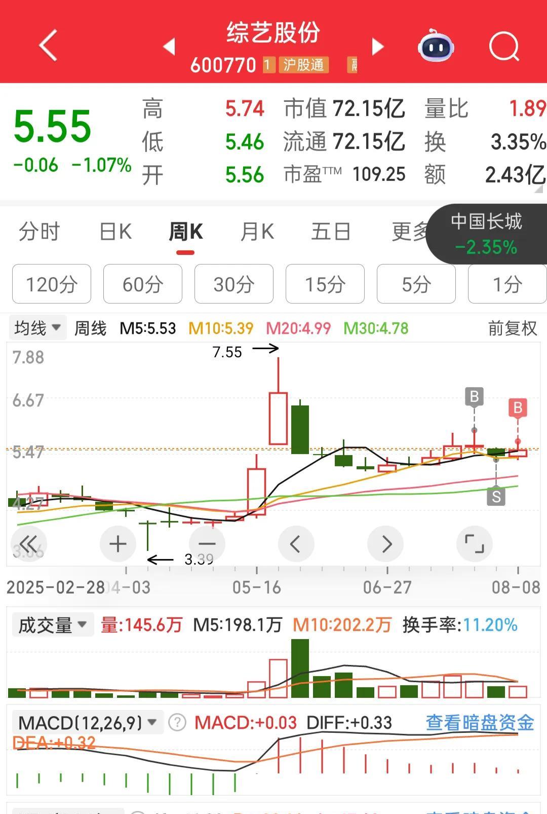 今天盘中买入综艺股份,本来周三想买入的,错过了没买,周四来了一根大阳线,今天周五