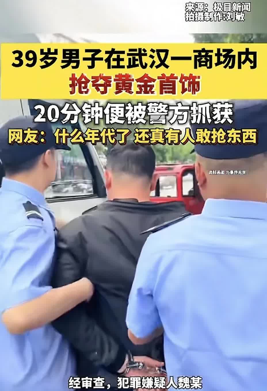 都什么年代了,居然还有人明目张胆的抢黄金!一39岁陕西男子晚上到武汉武昌区一商场